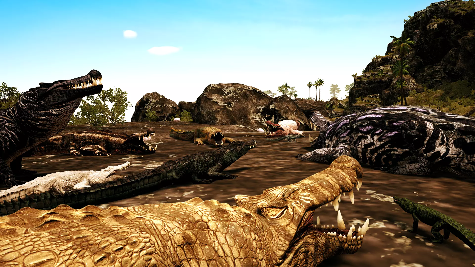 属性 +猪鳄的成长率和属性成长与厚头龙一致 +猪鳄的基础食物值为125 +猪鳄的最大食物值为300,高于游戏中其他任何生物 +猪鳄的基础生命值为425 +猪鳄的基础伤害为65 +猪鳄主要以肉类为食,但偶尔也可以吃鱼且不会生病。不过由于其饮食机制中对鱼类有最大摄入量限制,因此饮食中鱼类占比过高可能会导致生病。皮肤 +FireBelly(由Twilightwolf与Natahi4制作) +Leopard(由Valhalla制作) +Swamp Runner(由Pixeldeer与Novacaine制作) +Mangrove(由Callie制作) +Seaspray(由Novacaine与Valhalla制作) +Banded(由Gamevideosforlife与Novacaine制作) +Marbled(由Nonyapie与Natahi4制作) 其他 +新增猪鳄嘲讽表情 该嘲讽表情需要访问地图上所有主要的神明祭坛 +新增猪鳄舞蹈表情 该舞蹈表情需要拥有BoB原声音乐 +猪鳄会产卵,卵在产下后会被掩埋。其功能与古巨龟巢穴类似,且不必产在海滩上或海滩附近。