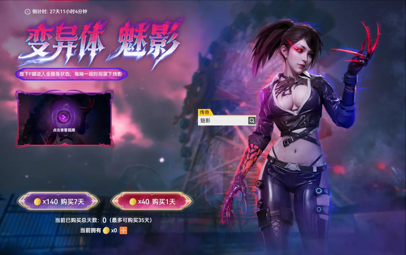 【变异体 魅影】 活动时间:2026年2月4日7点-2026年3月17日23点59分59秒 活动奖励: