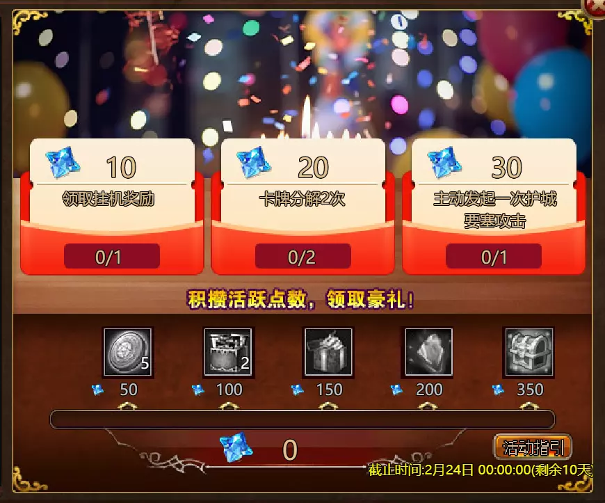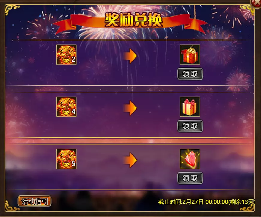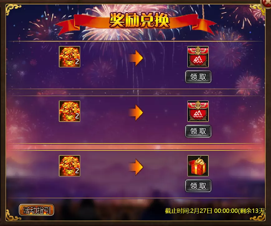亲爱的冒险者们, 新年活动即将开启! 活动时间:2026年2月17日00:00 – 2026年2月24日00:00(北京时间) 服务器:S1–S16 本次更新将推出三大活动: 1. 额外任务 完成指定活动任务即可获得丰厚奖励! 2. 双倍经验/银币 活动期间获得双倍经验和银币——更快升级,获取最大化奖励! 3. 黄金树兑换 收集活动道具,在黄金树处兑换奖励。 请合理安排时间,更新后别忘了登录参与活动!