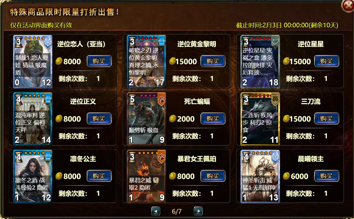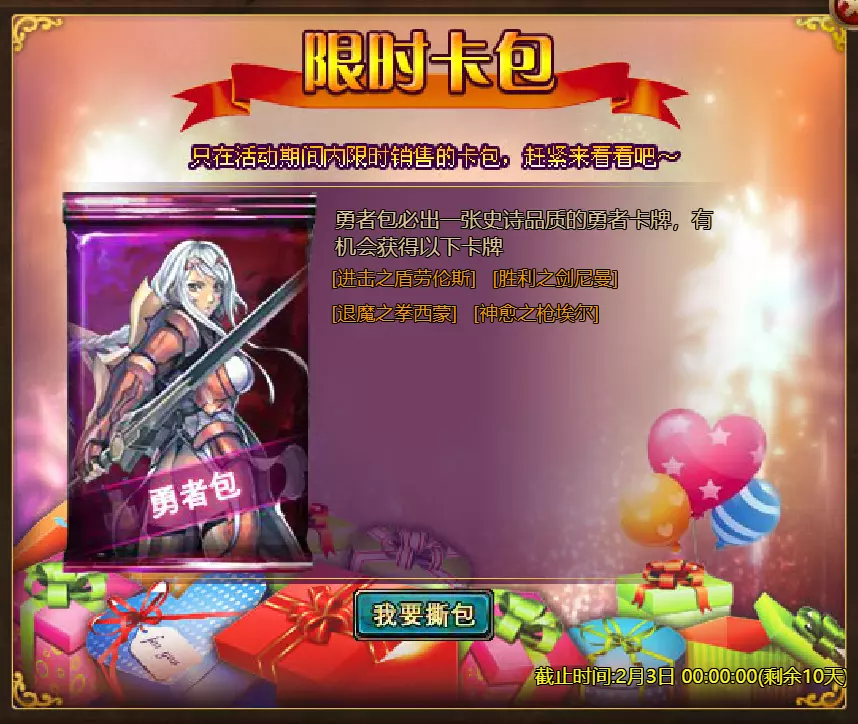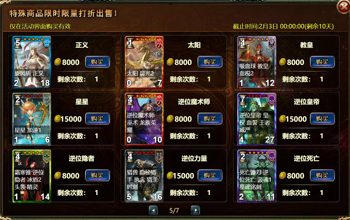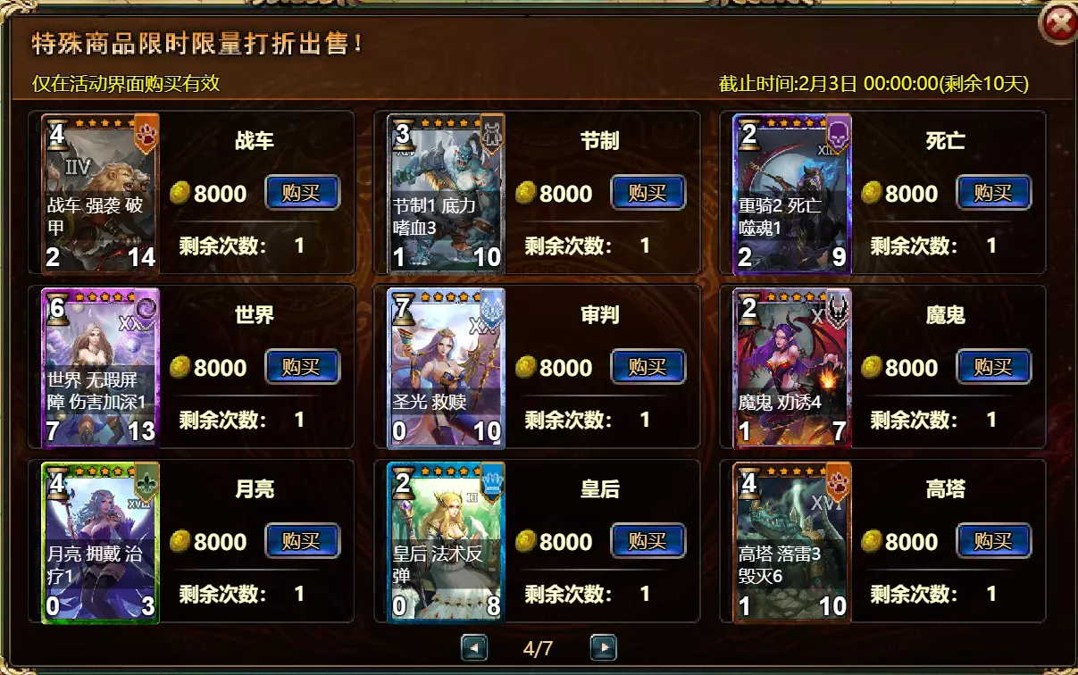 【维护公告】 各位玩家: 我们将于北京时间2026年1月27日上午9:30至11:30进行维护更新。具体维护进度可能会根据实际情况提前或延后,感谢您的理解。维护期间游戏将无法登录,由此带来的不便我们深表歉意。 本次维护主要内容如下: 【更新】 1. 地狱塔:增加层数 【活动】 1. 至高之战:凯琳·罗克西亚 2. 红钻风暴:红钻*2000/龙箱*1/银币*50000 3. 充值返利:烈风穿刺者(史诗)/银币*100000/水晶礼包*2/黑暗冠军药水*2/大师技能包II*2/红宝石碎片*5/黄金 hammer*5购买点数,获取奖励:8000点数可获得【女王埃塞尔拉(传说级)】*1 / 30000点数可获得【女王埃塞尔拉(神级)】*1 5.累计金币返利:累计10000金币可获得【传说级兽神 kogarasho 宝箱】(内含【兽神 kogarasho(传说级)】*1、【黄金 hammer】*20)*1 / 累计30000金币可获得【神级兽神 kogarasho 宝箱】(内含【兽神 kogarasho(神级)】*1、【黄金 hammer】*60)*1 6.神秘宝箱 7.超值返利 8.神话图鉴(白泽) 9.足球活动 10.淘金热(周常活动) 消耗10000金币可获得:【黄金树】*1、【火焰红宝石】*1、【太阳宝箱(传说级)】*2宠物愉悦*1 消耗30000金币:火焰红宝石*2,神级宝箱II*2,银币*3000000 消耗50000金币:黑欧泊*1,太阳宝箱(传说级)*4,宠物愉悦*5 消耗70000金币:火焰红宝石*2,神级宝箱II*4,银币*4000000 消耗900000金币:黑欧泊*1,神级宝箱II*6,太阳宝箱(传说级)*6,银币*5000000每日消费,领取奖励 消费100金币:融合催化剂*1,银币*10,000,塔楼门票*3 消费500金币:人类宝箱(稀有)*1,融合催化剂*2,水晶礼包*1 消费1,000金币:水晶礼包*2,天使宝箱(稀有)*2,银币*50,000 消费2,000金币:月神宝箱(史诗)*1,素材(传说)*10,宠物零食*1 消费5,000金币:水晶礼包*3,未绑定技能书碎片(良好)*10,火蛋白石*1 消费10,000金币:火红宝石*1,高级融合催化剂*1,银币*1,000,000礼包(限时活动)- 增益狂欢 10份胜利礼包 - 稀有时装盒*1/银币*2,000,000 10份神秘哥布林礼包 - 月神宝箱(史诗)*2/火蛋白石*1/银币*500,000 20份专家礼包IV - 专家礼包IV*10/银币*1,000,000 20份勇者礼包 - tome大厅门票*2/水晶礼盒*8 10份精英礼包 - 职业选择水晶*3/银币*800,000 13.地狱塔 14.地下城复刻:年度灾厄追击 15.年度灾厄道具兑换 16.毒蛇娜佳:积分抽奖 17.远古巢穴 18.英雄降临 19.特惠商店 注意: 1.活动14(地下城复刻:年度灾厄追击)、15(年度灾厄道具兑换)和16(毒蛇娜佳:积分抽奖)的举办时间为2026年1月27日00:00至2026年2月10日00:00(北京时间)2.所有其他活动时间为2026年1月27日00:00至2026年2月3日00:00(北京时间)。详情请见图片。活动内容以游戏内实际内容为准,官方拥有最终解释权。