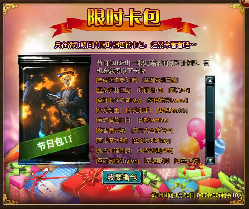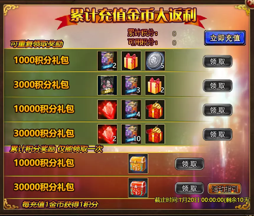 【游戏维护公告】 各位玩家: 我们将于北京时间2026年1月13日上午9:30至11:30进行维护更新。具体维护进度可能会根据实际情况提前或延后,感谢您的理解。维护期间游戏将无法登录,由此带来的不便我们深表歉意。 本次维护主要内容如下: 【更新内容】 1. 新增玩法【神秘宝箱】:添加了“神秘宝箱”功能。玩家可使用对应道具开启神秘宝箱并获得丰厚奖励,详细规则请在游戏内查看。 【修复内容】 1. 修复了【警戒】效果描述显示不正确的问题。 2.1. 修复了GSD后玩家无法退出公会的罕见问题。 2. 循环任务体验优化:调整了部分循环任务的出现概率和目标,优化了相关NPC的引导,使任务流程更顺畅。 3. 战斗界面优化:改进了战斗中符文技能的可用状态指示器。当符文可用时,其按钮背景会以蓝色高亮显示,提供更清晰的视觉提示。 4. 世界场景显示优化:在世界场景中新增【隐藏玩家】按钮。玩家可手动启用该功能,隐藏场景中其他玩家的角色模型。 【活动】 1. 至高之战:大天使马克西姆斯 2. 红钻风暴:红钻*2000 / 天使宝箱*1 / 银币*50,000 3.充值返利:【权杖礁(史诗级)】/银币*100000/水晶礼包*2/黑暗冠军药剂*2/大师技能包II*2/红宝石碎片*5 4.充值点数,获取奖励:8000点-【布伦希尔德(传说级)】*1/30000点-【布伦希尔德(神级)】*1 5.累计金币返利:10000金币-【凯妮(传说级)】*1/30000金币-【凯妮(神级)】*1 6.额外任务 7.特别福利 8.超值返利 9.神话图鉴(夸父) 10.足球活动 11.黄金rush(周常活动) 消耗10000金币:【紫罗兰决斗者(传说级)】*1、【太阳宝箱(传说级)】*2宠物愉悦*1 消耗30000金币:火焰红宝石*2、神级宝箱II*2、银币*3000000 消耗50000金币:黑欧泊*1、太阳宝箱(传说)*4、宠物愉悦*5 消耗70000金币:火焰红宝石*2、神级宝箱II*4、银币*4000000 消耗900000金币:黑欧泊*1、神级宝箱II*6、太阳宝箱(传说)*6、银币*5000000每日消费,领取奖励 消费100金币:融合催化剂*1,银币*10,000,塔楼门票*3 消费500金币:人类宝箱(稀有)*1,融合催化剂*2,水晶礼包*1 消费1,000金币:水晶礼包*2,天使宝箱(稀有)*2,银币*50,000 消费2,000金币:月神宝箱(史诗)*1,强化素材(传说)*10,宠物零食*1 消费5,000金币:水晶礼包*3,未绑定技能书碎片(良好)*10,火蛋白石*1 消费10,000金币:火红宝石*1,高级融合催化剂*1,银币*1,000,000【限时活动礼包】- 增益狂欢 20个专属礼包II - 神级宝箱II*2 / 银币*2,000,000 20个大师技能礼包VI - 大师技能礼包VI*10 / 银币*1,000,000 10个神秘亡灵礼包 - 火鬃狐碎片*20 / 宠物盛宴*2 10个节日礼包II - 魔法扫帚(7天)*1 / 星光宝箱(史诗)*1 / 银币*500,000 5个神话礼包 - 水晶礼盒*3 / 宠物零食*3 10个精英礼包 - 职业转换水晶*3 / 银币*800,000 详情请见图片。活动内容以游戏内实际内容为准,官方拥有最终解释权。