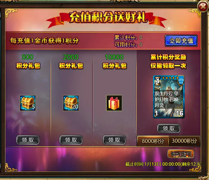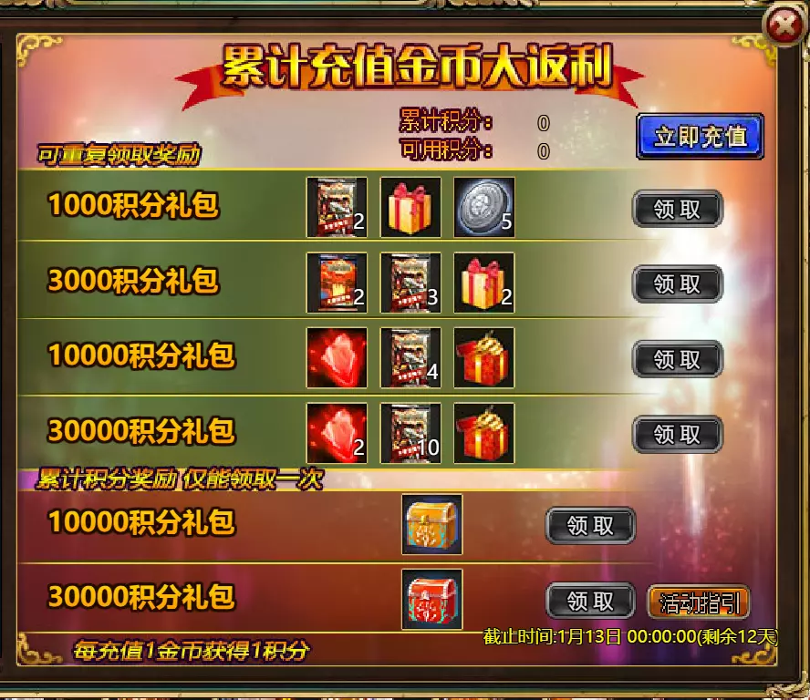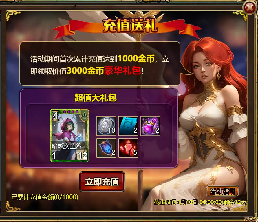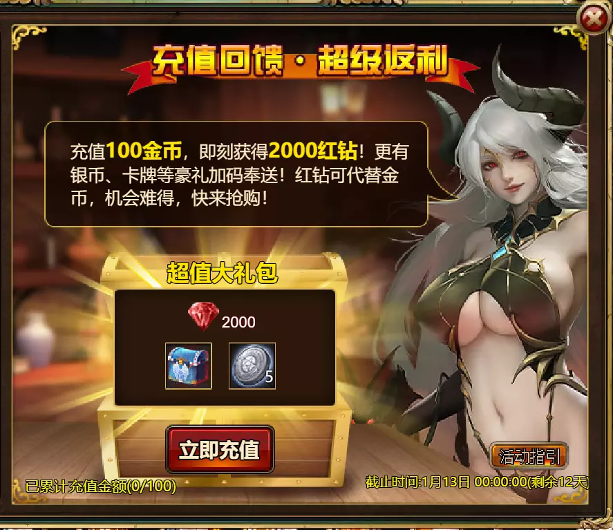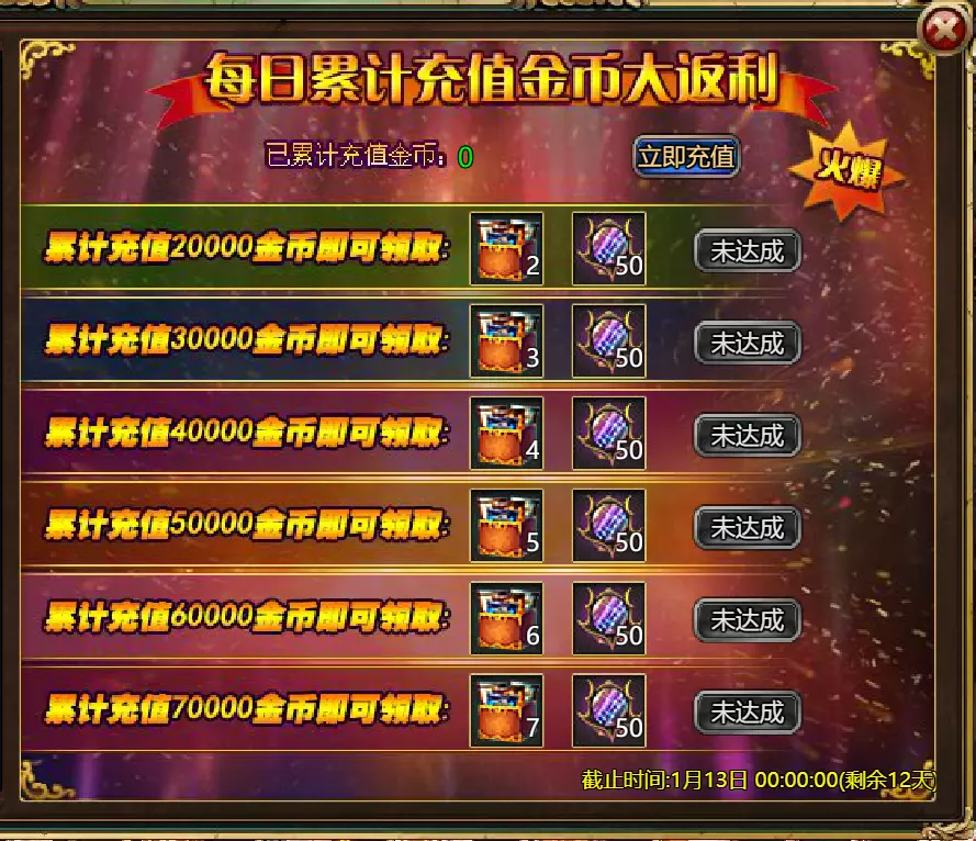 维护公告 各位玩家: 我们将于北京时间2026年1月6日10:00至12:00进行维护更新。具体维护进度可能会根据实际情况提前或延后,感谢您的理解。维护期间游戏将无法登录,由此带来的不便我们深表歉意。 本次维护主要内容如下: 【活动】 1. 至高天使:大天使米迦勒 2. 红钻风暴:红钻*2000/天使宝箱*1/银币*50000 3. 充值返利:深渊腐坏领唱者(史诗级)*1/银币*100000/神秘山谷门票*2/黑暗冠军药剂*2/ tome hall门票*2/红宝石碎片*5 4. 购点有礼:8000点-月之女祭司(传说级)*1/30000点-月之女祭司(神级)*1累计黄金返利:10000 - 精炼尊者(传说)*1 / 30000 - 精炼尊者(神级)*1 6.价值返利 7.塔罗奥秘(逆位女祭司) 8.星辰事件 9.黄金热潮(周常活动) 消耗10000金币:火焰红宝石*1,太阳宝箱(传说)*2,宠物愉悦*1 消耗30000金币:火焰红宝石*2,神级宝箱II*2,银币*3000000 消耗50000金币:黑欧泊*1,太阳宝箱(传说)*4,宠物愉悦*5 消耗70000金币:火焰红宝石*2,神级宝箱II*4,银币*4000000 消耗90000金币:黑欧泊*1,神级宝箱II*6,太阳宝箱(传说)*6,银币*5000000 10.每日消费,领取奖励 消费100金币:融合催化剂*1,银币*10,000,塔楼门票*3 消费500金币:人类宝箱(稀有)*1,融合催化剂*2,地狱门票*2 消费1,000金币:神秘山谷门票*3,天使宝箱(稀有)*2,银币*50,000 消费2,000金币:月神宝箱(史诗)*1,饲料(传说)*10,地狱门票*5 消费5,000金币:神秘山谷门票*3,未绑定技能书碎片(良好)*10,火蛋白石*1 消费10,000金币:火红宝石*1,高级融合催化剂*1,银币*1,000,000【限时活动礼包】- 增益狂欢 25份国王礼包 - 迅捷马鞍(30天)*1 / 月神宝箱(史诗)*2 / 银币*1,000,000 20份专家礼包IV - 专家礼包IV*10 / 银币*1,000,000 20份神秘亡灵礼包III - 蛋白石碎片*9 / 传说宝箱*2 / 银币*500,000 20份神秘混血礼包III - 超级虚空礼盒*2 / tome大厅门票*3 / 门票包*2 10份精英礼包 - 集会指令*3 / 银币*800,000 12.神秘山谷 13.无尽深渊 14.灾难涌动 15.VIP地下城 16.铁匠大师 17.炼金术大师 18.特惠商店 详情请见图片。活动内容以游戏内为准,官方拥有最终解释权。