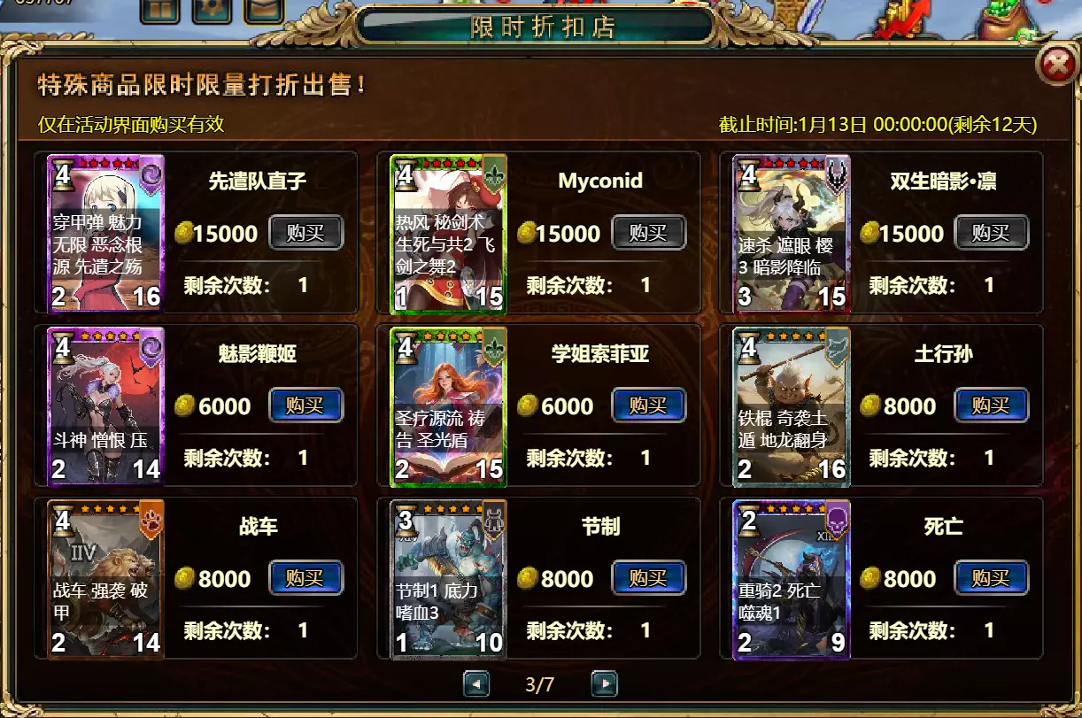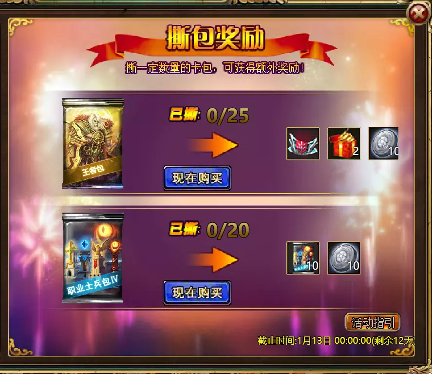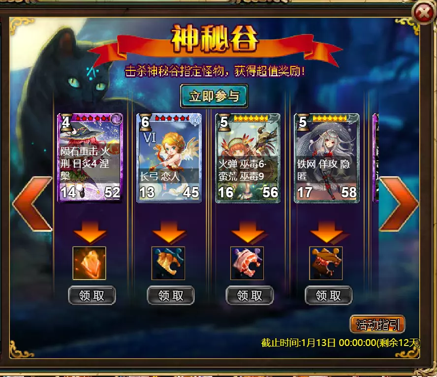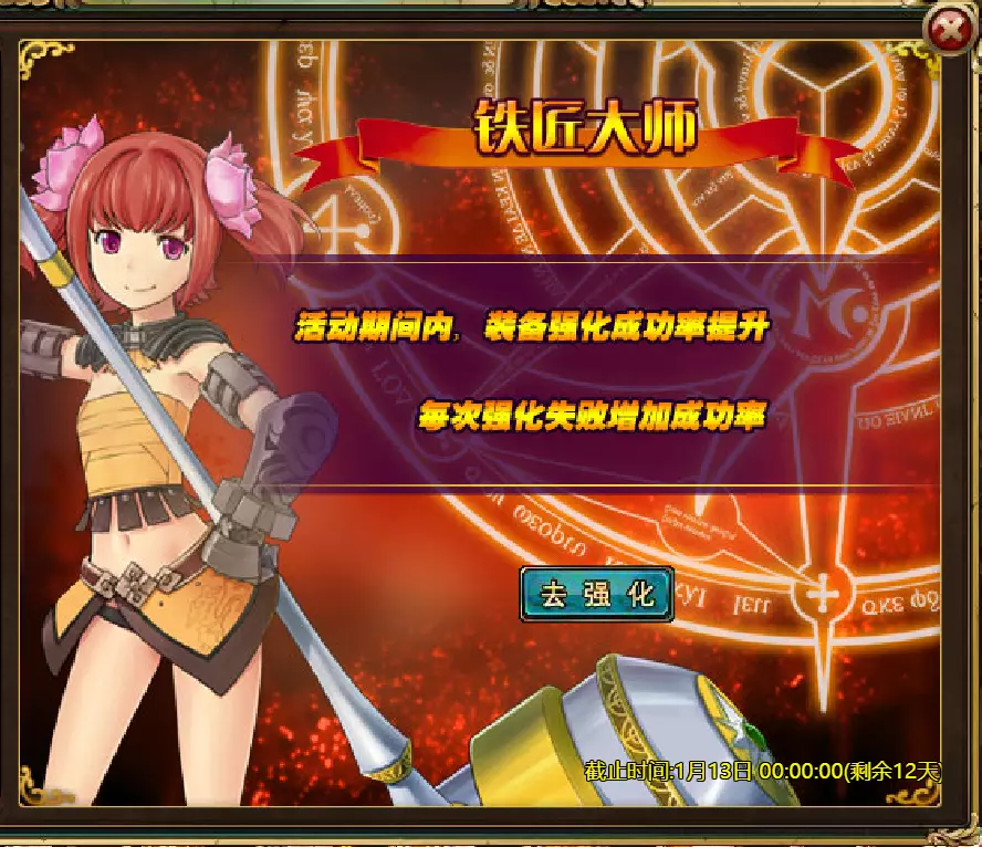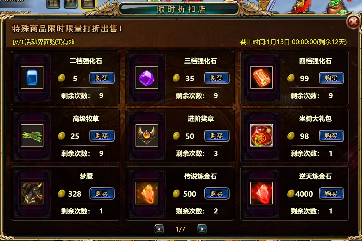 维护公告 各位玩家: 我们将于北京时间2026年1月6日10:00至12:00进行维护更新。具体维护进度可能会根据实际情况提前或延后,感谢您的理解。维护期间游戏将无法登录,由此带来的不便我们深表歉意。 本次维护主要内容如下: 【活动】 1. 至高天使:大天使米迦勒 2. 红钻风暴:红钻*2000/天使宝箱*1/银币*50000 3. 充值返利:深渊腐坏领唱者(史诗级)*1/银币*100000/神秘山谷门票*2/黑暗冠军药剂*2/ tome hall门票*2/红宝石碎片*5 4. 购点有礼:8000点-月之女祭司(传说级)*1/30000点-月之女祭司(神级)*1累计黄金返利:10000 - 精炼尊者(传说)*1 / 30000 - 精炼尊者(神级)*1 6.价值返利 7.塔罗奥秘(逆位女祭司) 8.星辰事件 9.黄金热潮(周常活动) 消耗10000金币:火焰红宝石*1,太阳宝箱(传说)*2,宠物愉悦*1 消耗30000金币:火焰红宝石*2,神级宝箱II*2,银币*3000000 消耗50000金币:黑欧泊*1,太阳宝箱(传说)*4,宠物愉悦*5 消耗70000金币:火焰红宝石*2,神级宝箱II*4,银币*4000000 消耗90000金币:黑欧泊*1,神级宝箱II*6,太阳宝箱(传说)*6,银币*5000000 10.每日消费,领取奖励 消费100金币:融合催化剂*1,银币*10,000,塔楼门票*3 消费500金币:人类宝箱(稀有)*1,融合催化剂*2,地狱门票*2 消费1,000金币:神秘山谷门票*3,天使宝箱(稀有)*2,银币*50,000 消费2,000金币:月神宝箱(史诗)*1,饲料(传说)*10,地狱门票*5 消费5,000金币:神秘山谷门票*3,未绑定技能书碎片(良好)*10,火蛋白石*1 消费10,000金币:火红宝石*1,高级融合催化剂*1,银币*1,000,000【限时活动礼包】- 增益狂欢 25份国王礼包 - 迅捷马鞍(30天)*1 / 月神宝箱(史诗)*2 / 银币*1,000,000 20份专家礼包IV - 专家礼包IV*10 / 银币*1,000,000 20份神秘亡灵礼包III - 蛋白石碎片*9 / 传说宝箱*2 / 银币*500,000 20份神秘混血礼包III - 超级虚空礼盒*2 / tome大厅门票*3 / 门票包*2 10份精英礼包 - 集会指令*3 / 银币*800,000 12.神秘山谷 13.无尽深渊 14.灾难涌动 15.VIP地下城 16.铁匠大师 17.炼金术大师 18.特惠商店 详情请见图片。活动内容以游戏内为准,官方拥有最终解释权。