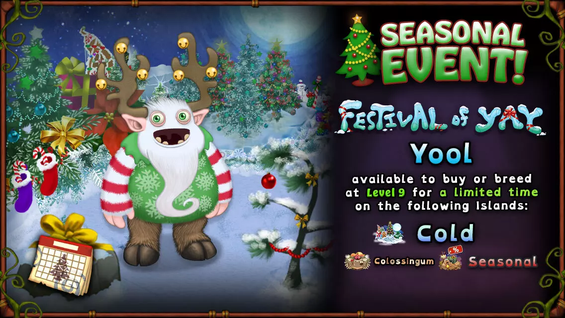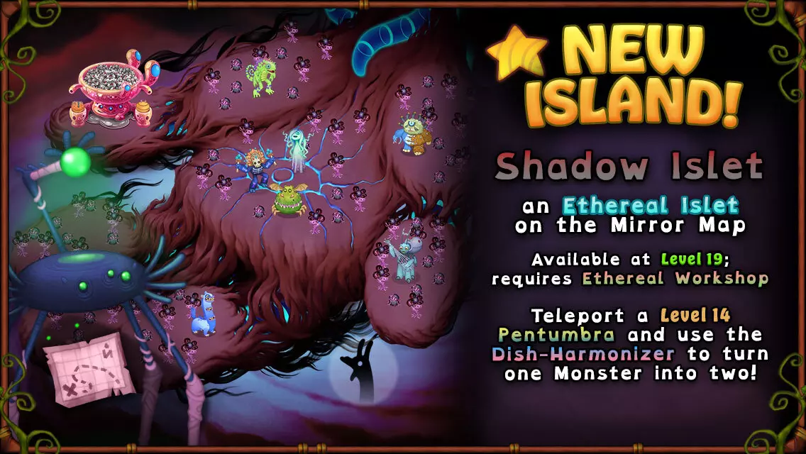你一直在焦急等待影之岛的到来…… 在这场欢庆奇迹中,它终于来了!探索备受期待的【影之岛】,这里有【凡杜尔】以及其他熟悉的以太族角色!此外,前往【寒冷岛】还能获得一个传奇惊喜! 本次更新内容: 1. 新岛屿:影之岛,登场角色为寒冷原始之神凡杜尔 2. 新传奇角色:bbli$zard,由bbno$配音 3. 新怪物:eRmA gUrDy、史诗级吉古尔、史诗级克兰奇、史诗级鲁巴 4. 欢乐 advent 日历每日特惠!