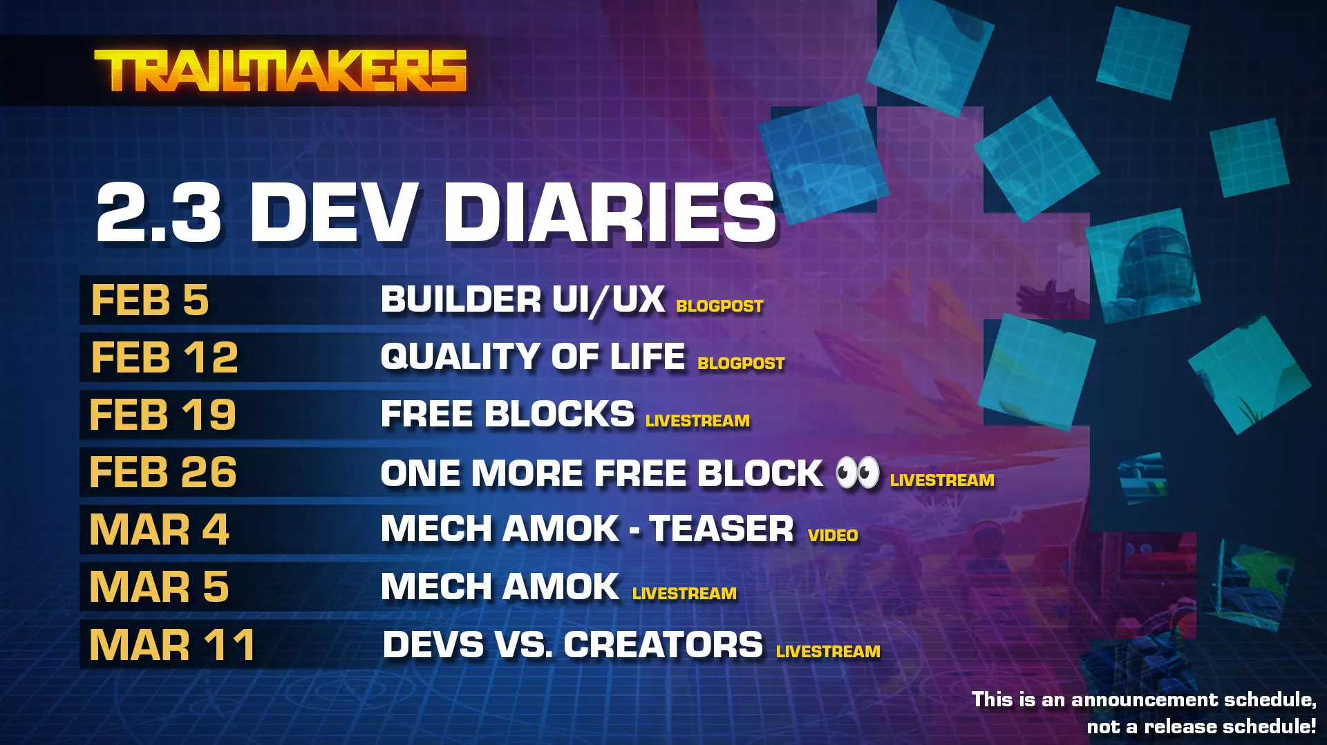 全新的胎压和牵引力配置器。 以上就是本次开发日志系列的最后一篇博文。下周我们将转为经典直播形式,深入介绍全新的免费模块。 完整日程安排:
