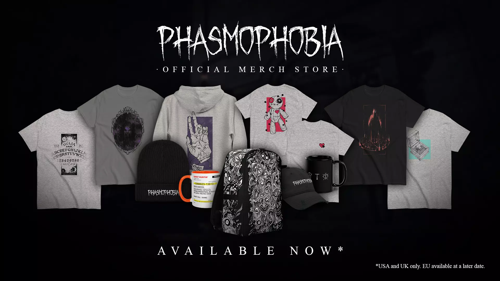 欢迎回来,猎鬼者们。我们为你们准备了一些官方周边商品。《恐鬼症》官方周边商店现已在美国和英国上线。欧洲地区将在晚些时候推出。