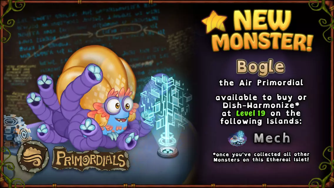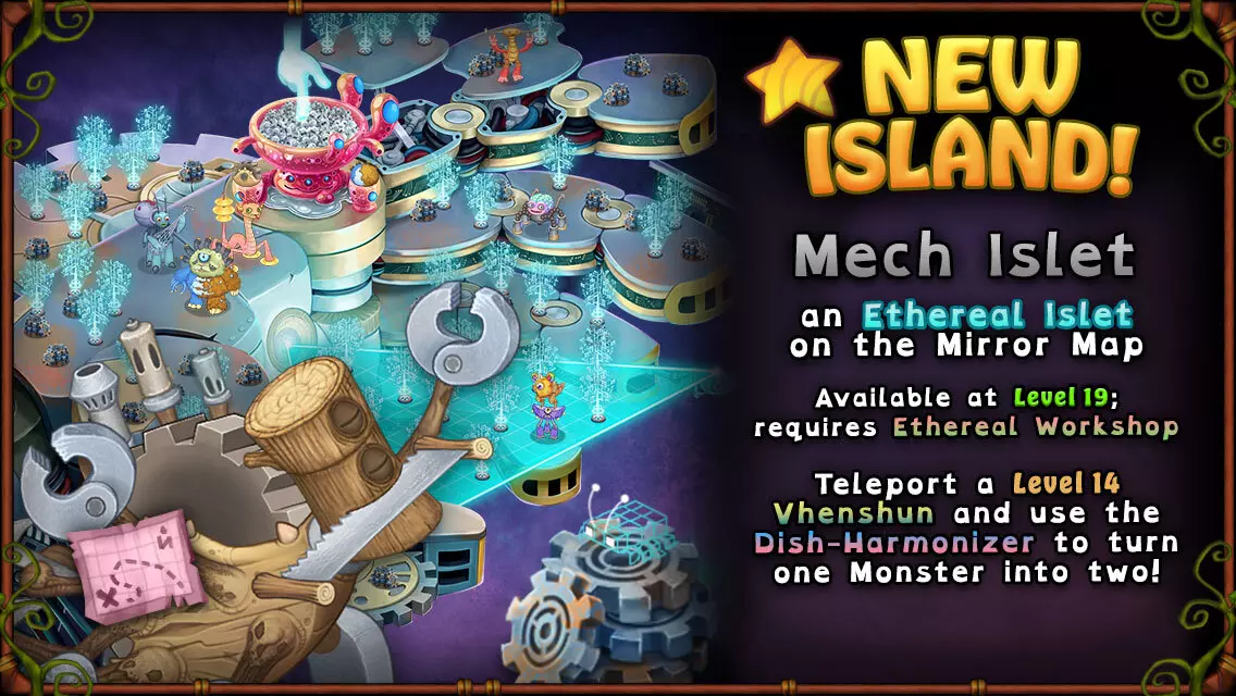 准备就绪,《乙醚群岛》全新岛屿【机械岛】现已上线! 扎罗的第二座乙醚群岛——【机械岛】是一座机械科技奇迹,这里汇集了所有你喜爱的机械元素怪兽,以及专属的空气本源怪兽【博格】! 本次更新内容还包括: 1. 新增怪兽:稀有斯阔特、稀有布洛特、稀有幼虫卢斯 2. 推出天空彩绘系列皮肤,其中包含4款全新皮肤 3. 竞技场点唱机新增【开箱时刻】曲目 4. 扩展所有岛屿的缩放范围