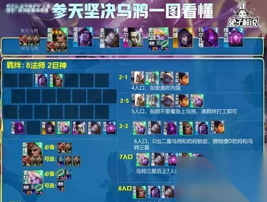 在电子竞技的世界中,掌握英雄角色的技能和属性固然重要,但了解如何根据对局情况为英雄选择合适的装备,才能在《英雄联盟》中成为真正的高手。乌鸦(斯维因)是一个擅长控制和持续伤害的法师英雄,他需要通过装备来最大化自己的优势。本文将从多个角度深入探讨乌鸦的装备选择,帮助玩家在对局中游刃有余。 了解乌鸦的基本定位 乌鸦以其出色的控制技能和持续作战能力而著称。他的被动技能“邪鸦附体”可以回复生命值,同时Q技能和W技能为他提供了远程消耗和近战控制的能力。装备的选择应聚焦于增强他的生存能力以及提升法术强度和技能冷却。