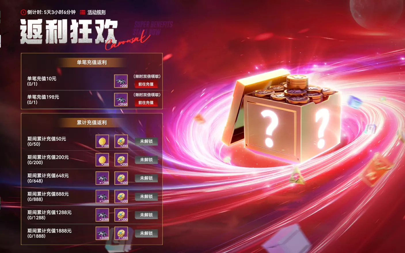 【充值回馈】 活动时间:2025年10月29日7点-2025年11月06日23:59:59 活动奖励: