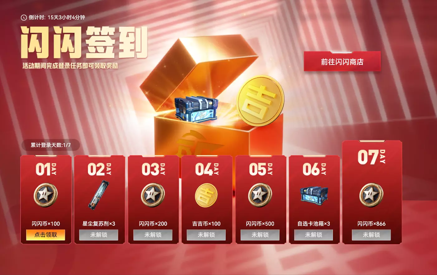 【闪闪签到】 活动时间:2025年11月01日-2025年11月16日 23:59:59 活动规则:活动期间,累计登录达到指定天数可以领取对应奖励 活动奖励: