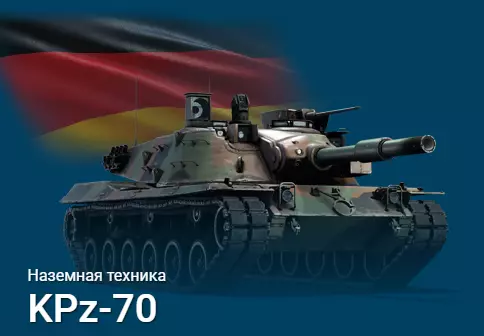 优点: √. 标配DM13(尾翼稳定脱壳穿甲弹)。 √. 顶级DM23(尾翼稳定脱壳穿甲弹)。 √. 立体测距仪。 √. 火炮垂直稳定器。 √. 烟雾弹。 √. 双重操控系统。即如果炮手被击伤,车长将接管火炮操控。 缺点: ╳. 无稳定器(【严重】!)。 ╳. 车体及炮塔装甲。 ╳. 车长指挥塔(【水桶】)。 ╳. 维修费用虚高。 争议点: *. 机动性。 *. 火炮俯仰驱动。这辆坦克就是垃圾,所以完全不值得关注,只是为了研发后续线路才升级它。但千万别用它玩! ⊳KPz-70