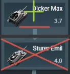 优点: √. 穿深出色。 缺点: ×. 自行反坦克炮的机动性有待提高。 ×. 装填时间。Dicer Max的装填时间还算正常,但Sturm Emiel的装填时间…… ×. 开放式战斗室。 ×. 没有装甲。等着被高爆弹击中吧,空中的飞机也会对你投弹。 【自行火炮分支(最右侧)同样不推荐使用和游玩。】