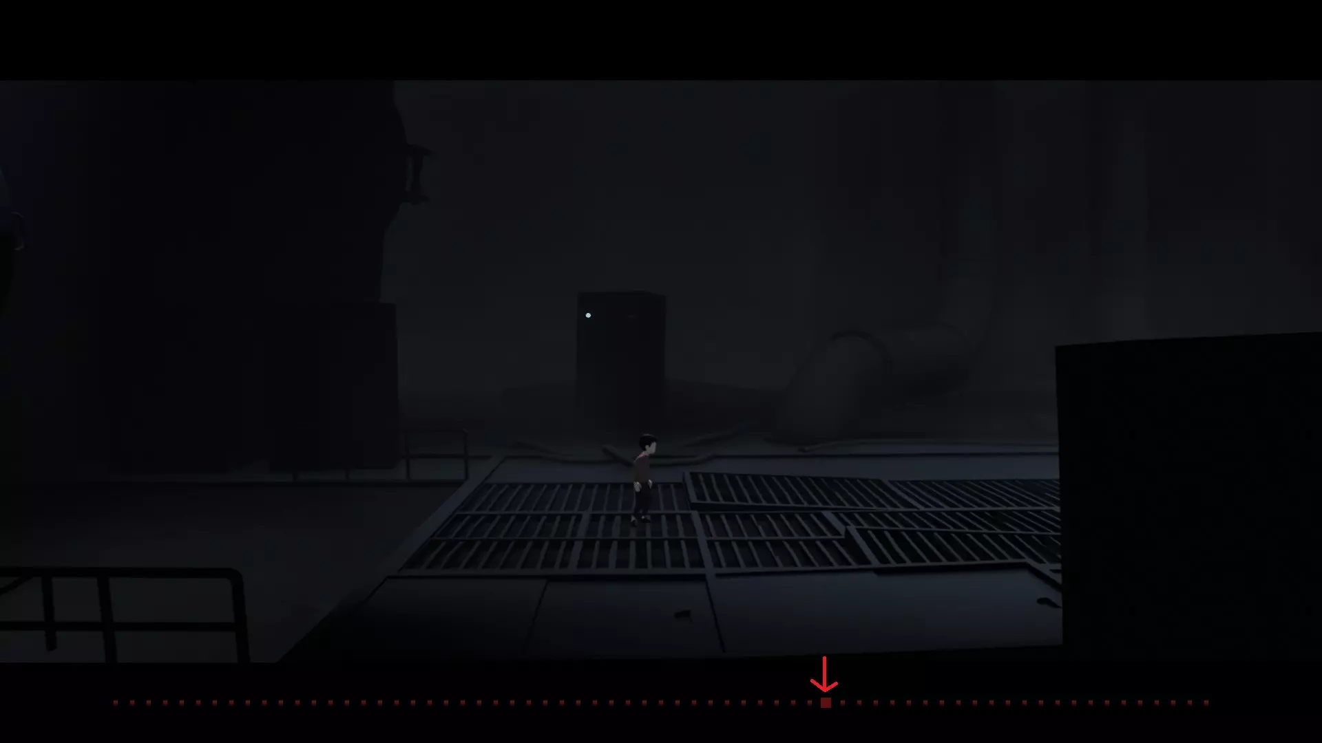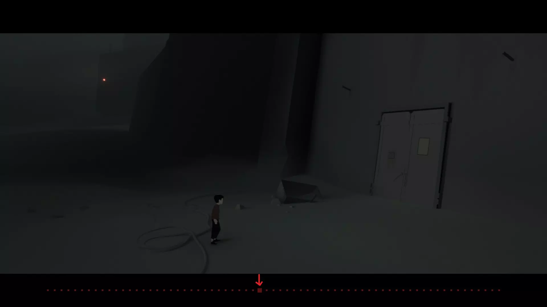 从通道出来后,会看到一个比之前遇到的球体大十几倍的巨型球。背景中点亮的灯代表已收集的数量,每收集一个就会点亮一盏灯。当集齐13个后,巨型球即可进入。 进入巨型球内部后走到尽头,按抓取键向左拉动即可(键盘:右Ctrl + 左方向键,手柄:X键 + 左方向键)。