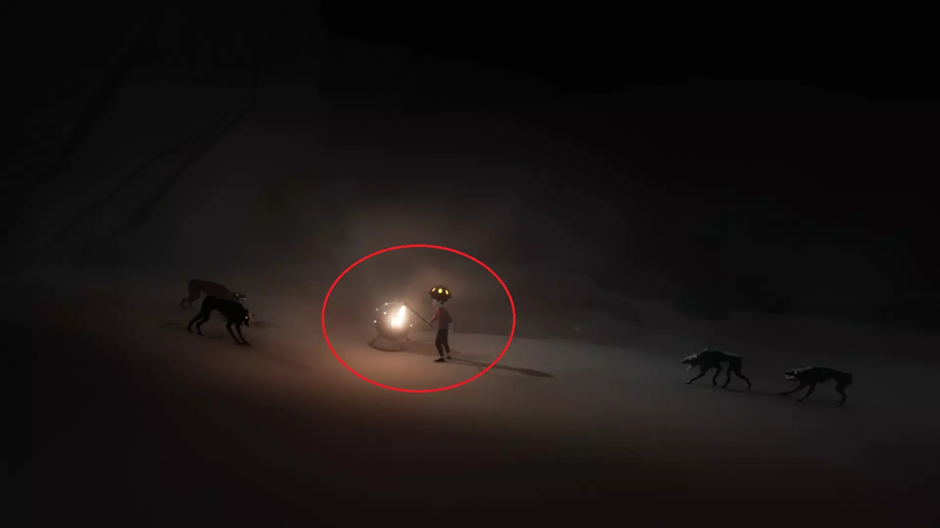 进入里面的洞穴,拿到一只火把,可以驱逐两面夹击的猎犬。然后就可以在保全自身的情况下,伺机破坏这只球。破坏完后,它们就一哄而散了。