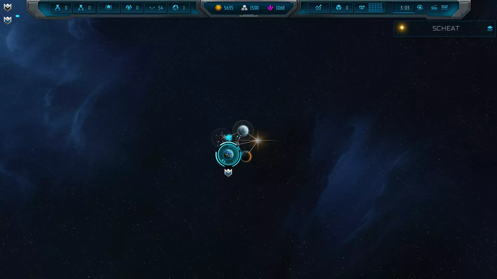 在这里我们可以订购舰船,最棒的是——舰船会在最近的工厂生产。这大大减少了微操,让你能专注于那些精彩的战斗! 银河地图 现在你可以(用鼠标滚轮)缩小。由于你总是会初始获得2艘免费侦察机,到目前为止它们应该已经为你侦察了一些行星。下面是你在大多数游戏开始时会看到的标准画面。