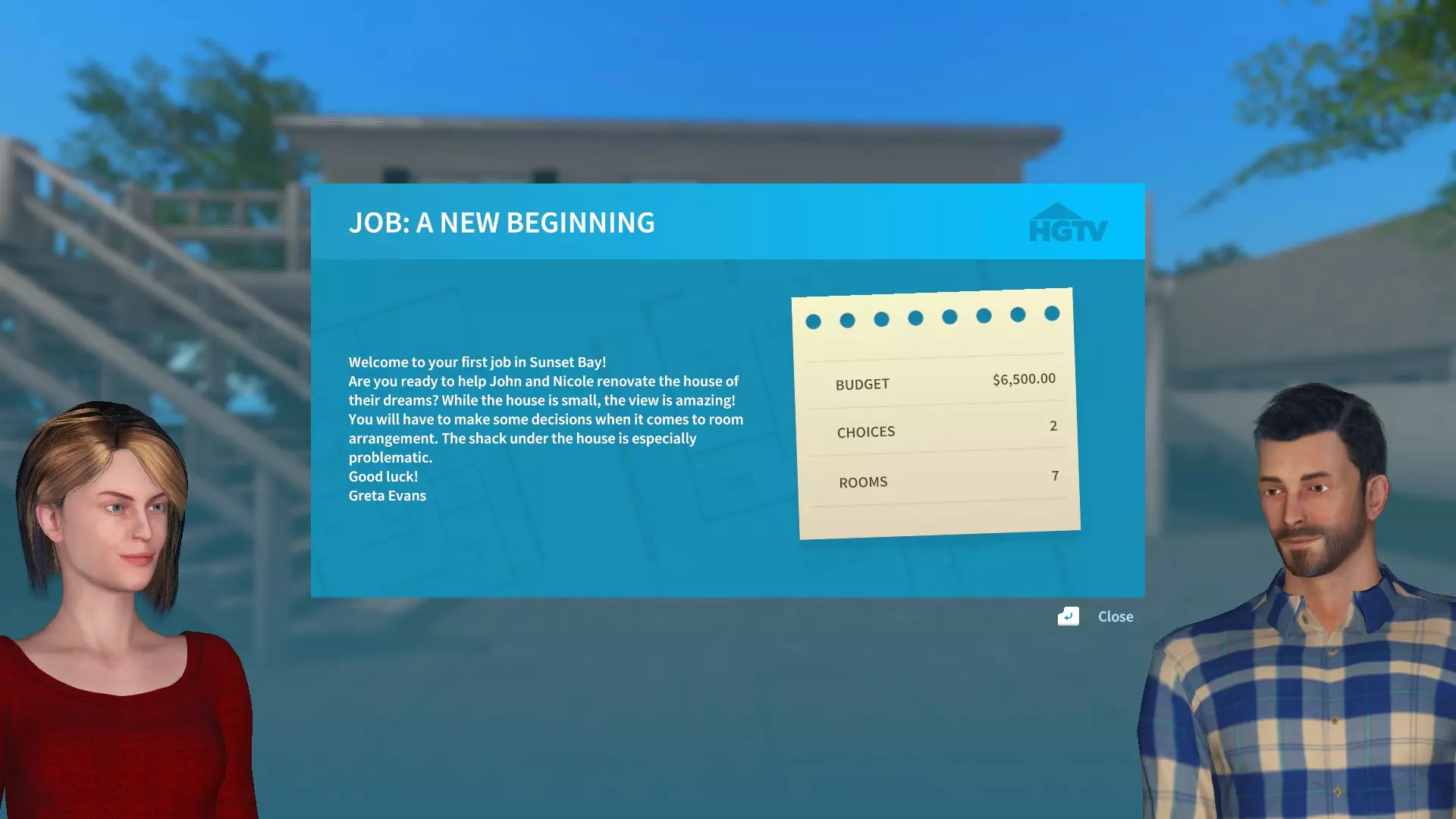 HGTV DLC 价格:8.19欧元 该DLC包含10个额外的房屋可供翻新,以及一个名为日落湾的新地点。游戏中还新增了两位电视节目主持人:名为格蕾塔的女性和名为奥利弗的男性。在每个房屋的翻新过程中,你将有1-3次机会在格蕾塔和奥利弗的意见之间做出选择。他们会提供建议,你需要选择其中一个并按照其建议完成工作。