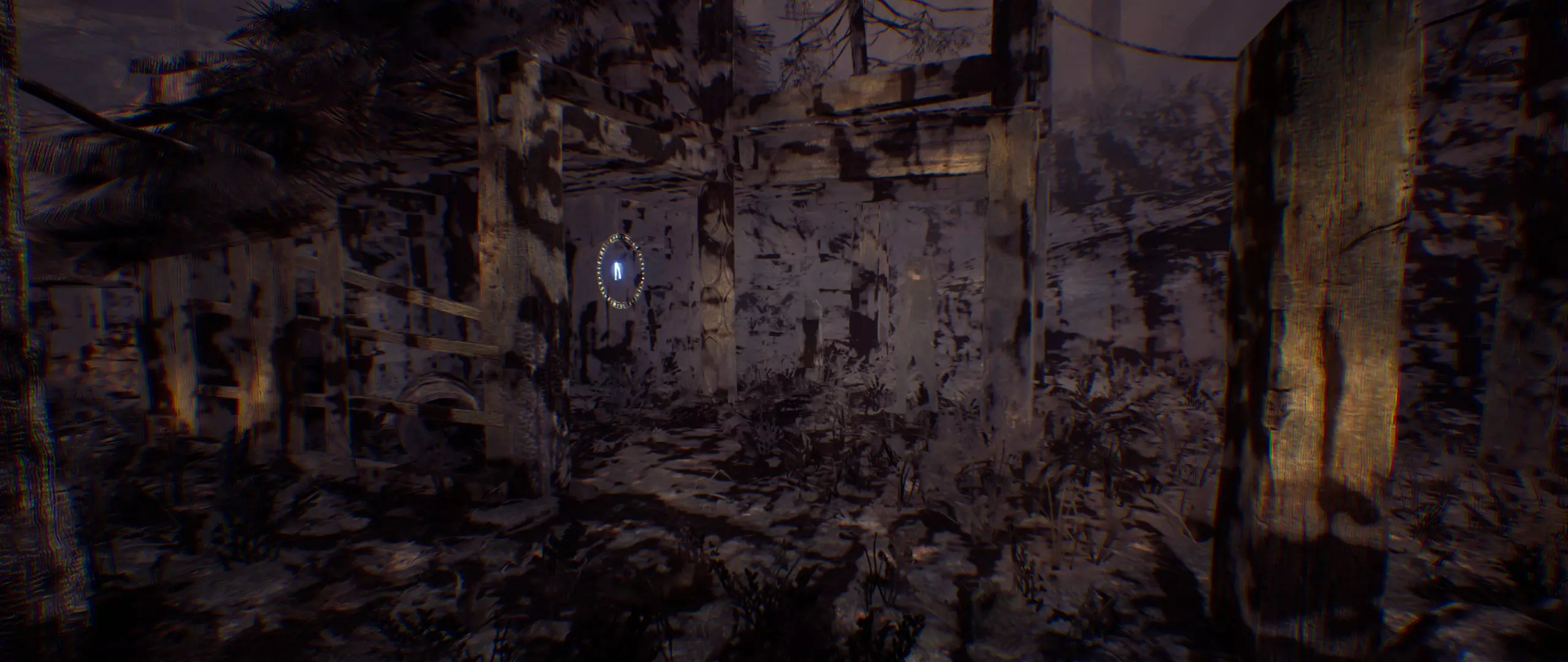 你刚刚穿过了第二扇门。前方会出现两座房子,请选择右边的那座。不过说真的,那玩意儿能不能被称为房子都得打个问号。