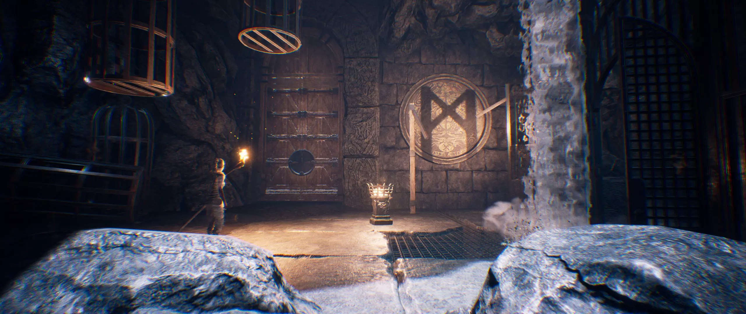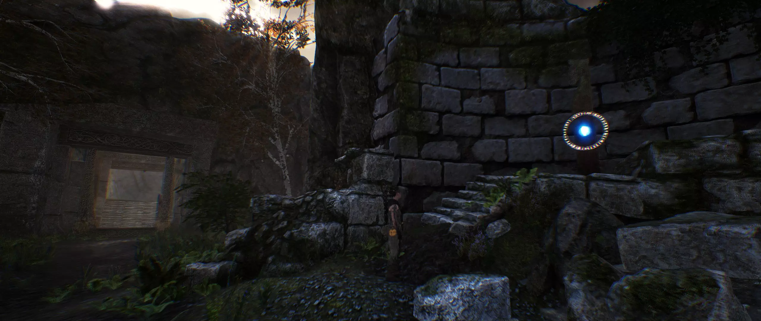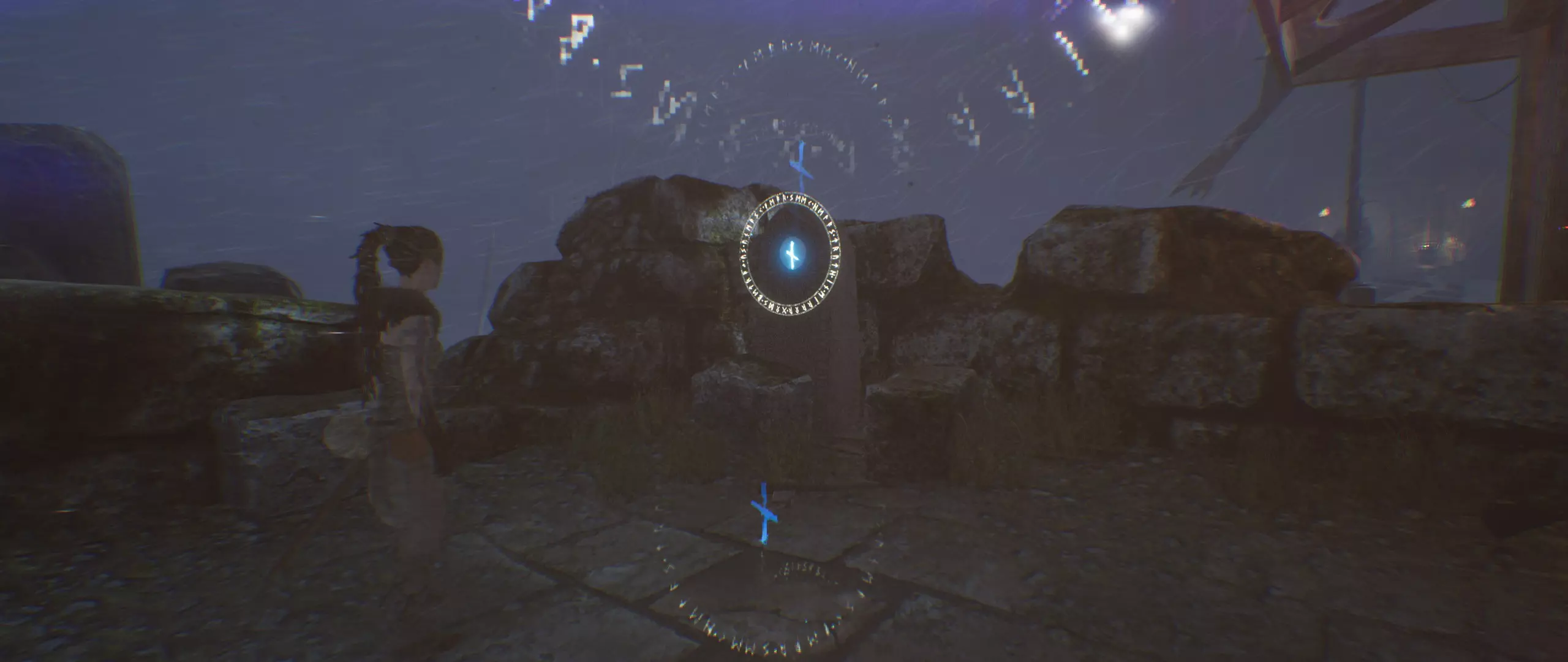 找到符文。然后聚焦面具以进入“暗影世界”,并打开塔楼的主门。