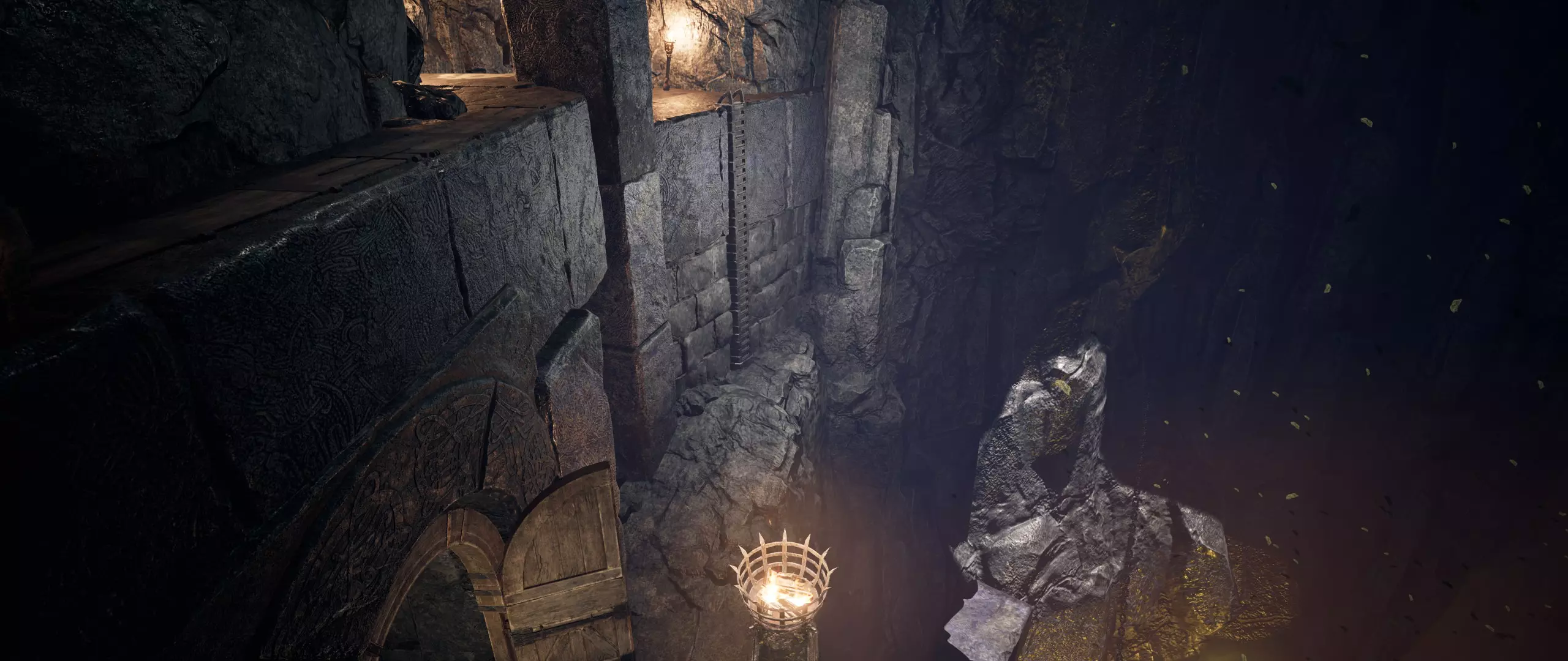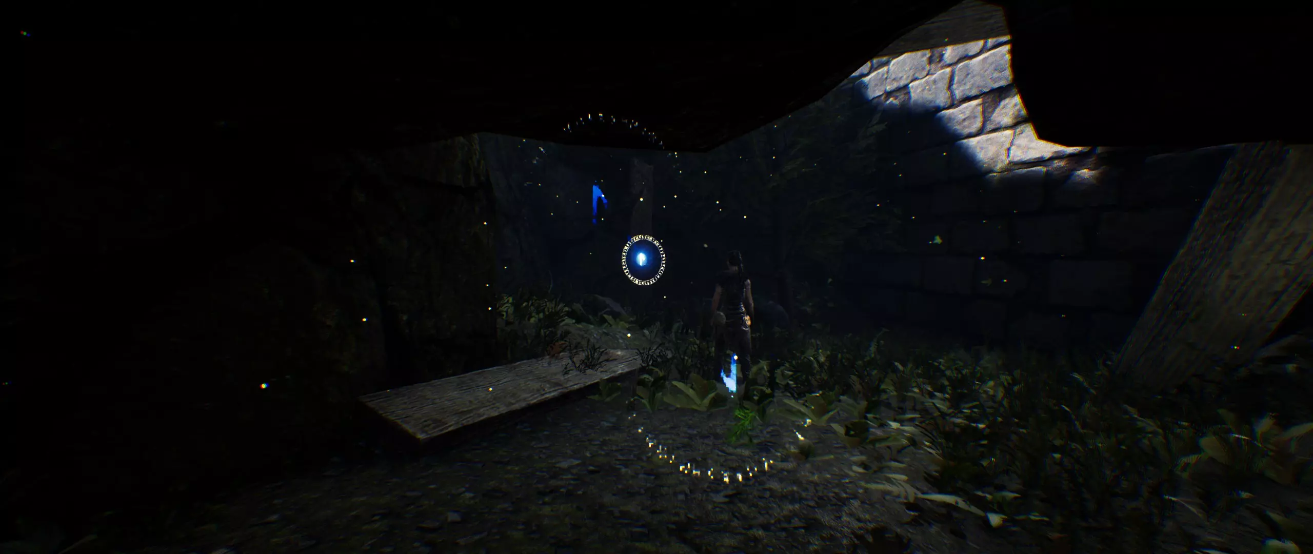 你需要与光线互动。下一个位于你右侧,与截图呈90度角的位置。当我第一次收集到第36块石头时,我是在阴影中完成的。当时我还没有点燃任何火把。因此,我建议你也直接在阴影中收集它(不过我认为你也可以在照亮整个房间后再收集)。