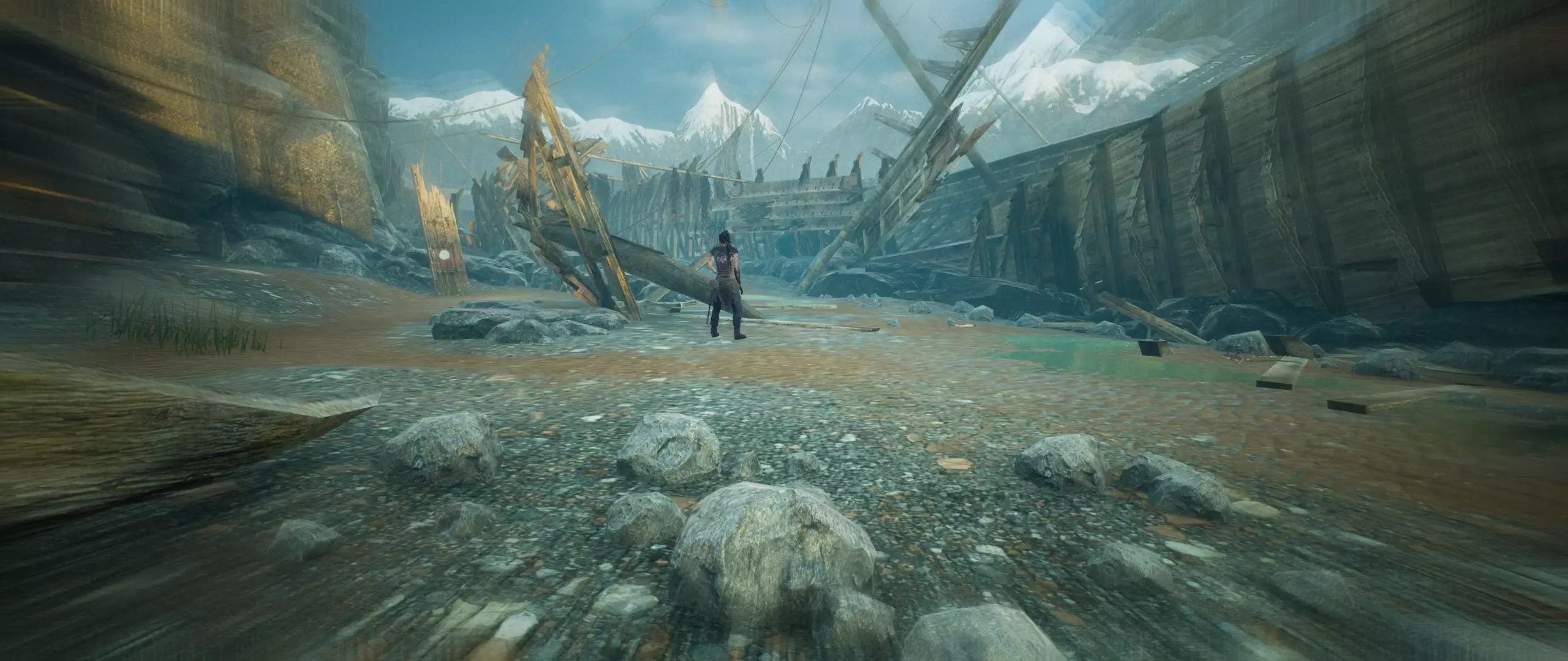 然后你会出现在这片海滩上。继续向左走。