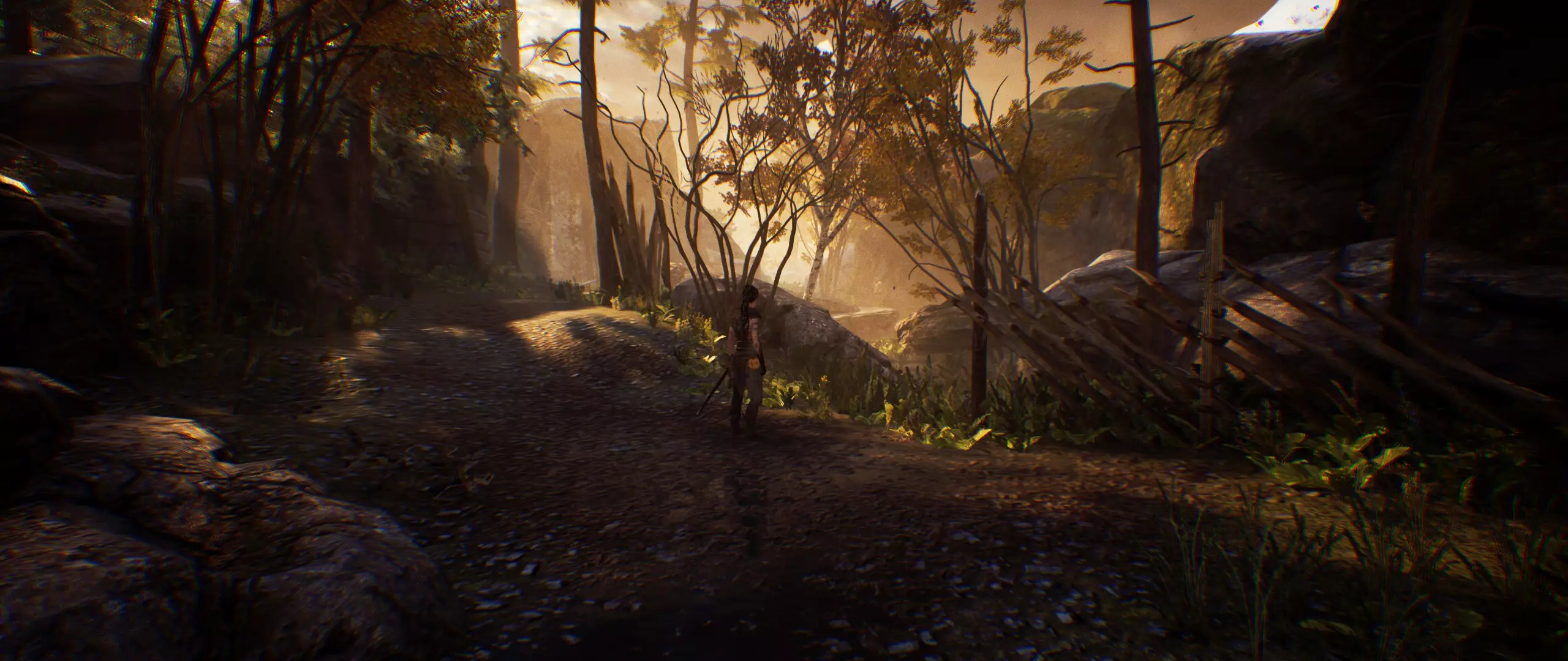 你刚刚穿过了门。沿着小路走,从木梁下穿过。
