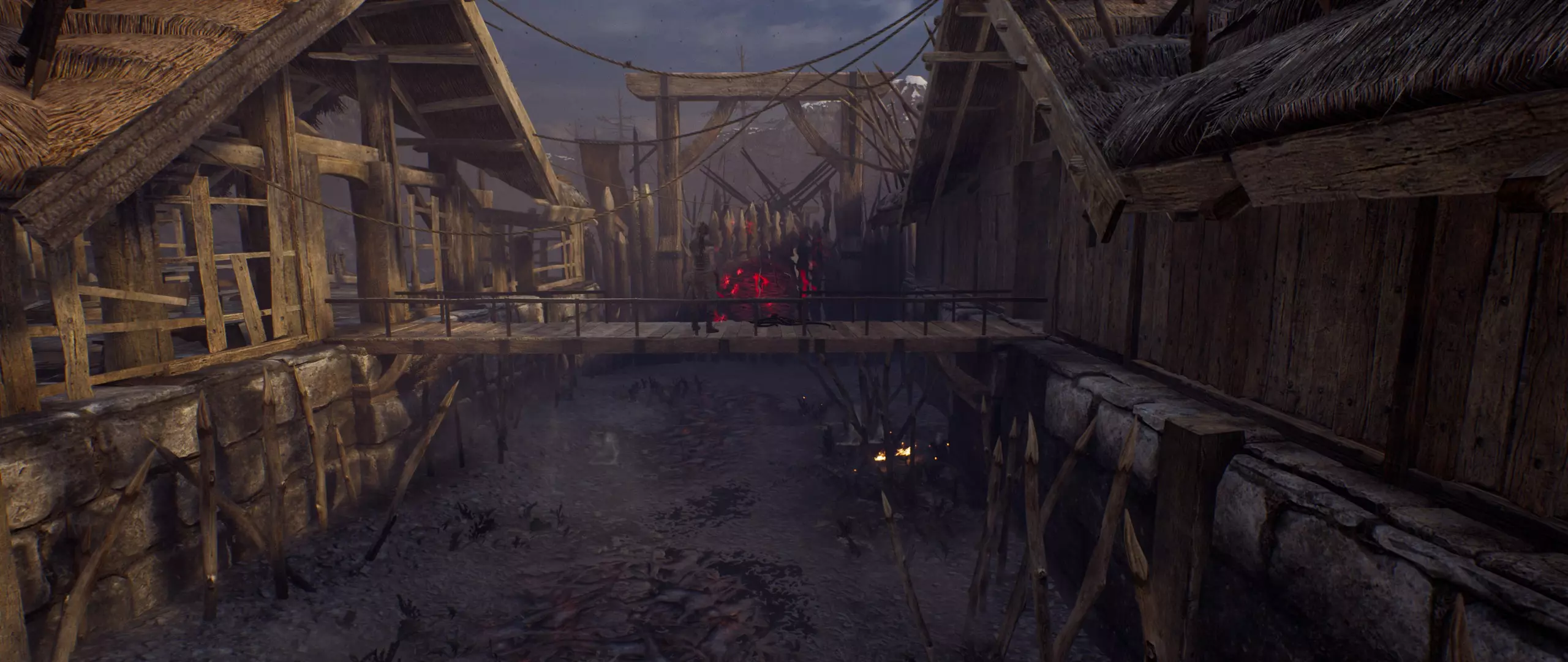 继续游戏,穿过第一道门后,你会看到一座桥和一条路。在你的左边。