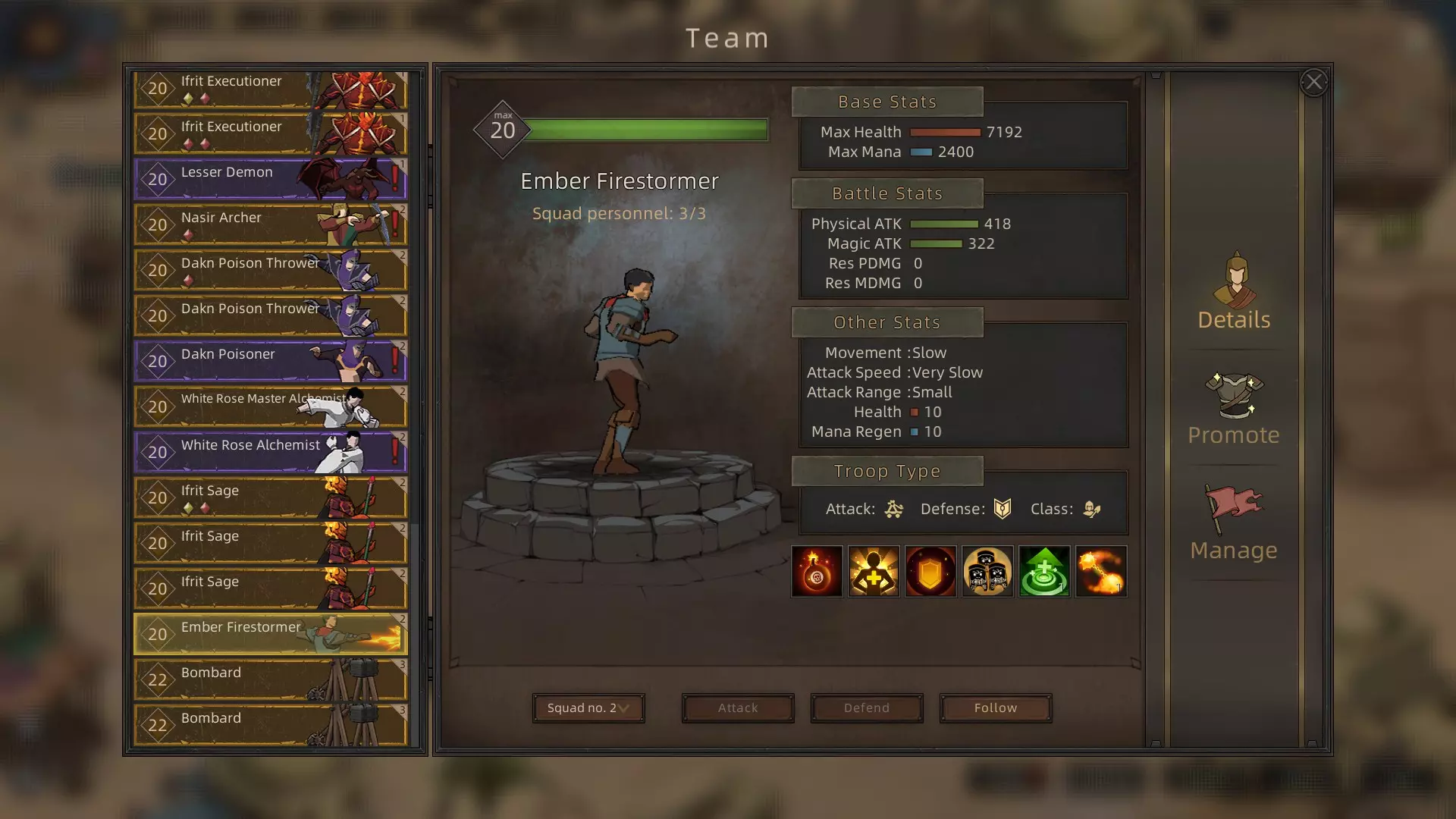 晋升树 灰烬工程师>灰烬喷火兵>灰烬风暴兵 获取方式 从在酒馆间游走的灰烬招募者处招募。通常需要先招募灰烬工程师,再将其晋升为风暴兵。 评价 本质上是人类攻城武器。虽然不如其他攻城机械强大(且耐用),但在游戏早期的攻城战中是不错的支援单位。
