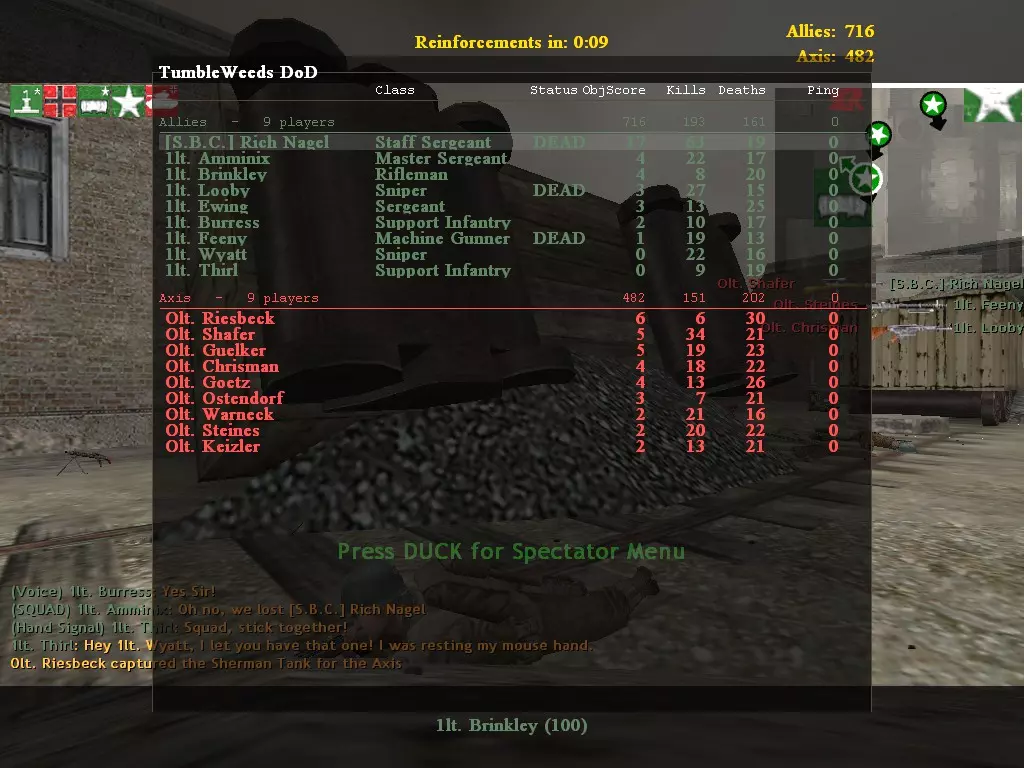 Which game do you prefer? I will list 5 reasons that these games are different, and how they add into the experience of a great game. Note, I AM NOT CALLING ONE GAME BETTER THAN THE OTHER. I enjoy both games, and they both do something that the other game doesn't. Also, the reasons are not listed on how good the are. I'm just going to mention them and talk about them, in no particular order. So let's get started. DoD Reason 5 Classes There are so many classes in DoD, so you won't get bored of playing as the same class. With 9 classes for the Allies, 9 for the Axis, and 5 for the British, you won't get tired quickly. However, some of the classes are extremely similar. The .30 Cal and BAR serve the same purpose - support. Some of these classes are not very varied, and not very balanced. To make up for this, the weapons are varied and have a different feel to them, to make up for the similarities for the uses. For example, the .30 Cal needs to be deployed to be effective. It's rendered useless if otherwise. The BAR however can be used on the run, if handled correctly. To make up for that, it's magazine is smaller and damage is reduced. DoD Reason 4 The mod Sturmbot adds in bots to the wonderful game of Day Of Defeat. Sure, they aren't very intelligent, but if you want a real challenge you can make a team of twelve against just you. As bots, they will still attack you, and kill you, unlike people who stand there just so that you can make a lot of kills. They can be incredibly difficult, or extremely easy, depending how you go at it. If you wish to practise, this is where to go. Unfortunately the creator of Sturmbot, Johan Linde, has gone missing after a tsunami hit the place he was vacationing. He was 16 years old, and is now considered dead. His contribution to DoD was amazing, and he will be missed. The Sturmbot website and news page : http://www.dodbits.com/dods/index.php/half-life-1-games/60-sturmbot-versions-and-downloads DoD Reason 3 The thing about games with huge communities, like Team Fortress 2, is that sometimes you'll get a game that's too full, too empty, or just not right. People will join and leave quickly with games like TF2. If you start with a game of 10, you may end up with 5 or 25. With DoD however, the people who play on servers generally stay there for some time. They aren't picky like most 12 year olds and don't normally complain about the opposing team. Day Of Defeat doesn't have people hating it, like Call Of Duty, it doesn't have elitists boasting about how good they are, like Black Ops, and it doesn't boast itself as the best game in the genre, like Battlefield 3. Small commuinty = controlled community. DoD Reason 2 If I had to choose to be one English speaking nationality, it would be British. The British can say almost anything and get away with it, as their accent makes it sound legit. British humour is far superior to American sitcoms, which depend on people fake laughing every time something yells at something. And the British faction in Day Of Defeat is one of my favourite factions to play as. While only appearing on a few maps, and not having as many classes as the Allies or Axis, the entertaining voice acting, unique classes and special weapons make the British a highlight of the original DoD. Why they weren't in DoD:S, we'll never know. DoD Reason 1 For some people, the hard drive disk space can be an issue. With games like Team Fortress 2, which is immensly popular, being 12 GB at the moment, some people would prefer a great game which isn't as big. Sure there are tons of indie games out there, but if you're looking for a great team based FPS, there aren't many. Sure there's Counter Strike and Team Fortress, but more people own Counter Strike Source than they do Counter Strike, and Team Fortress 2 is free to play, so what is the point of getting those games? DoD on the other hand is a fantastic experience with so many reasons to play, that they could make a list of their own. While not as popular as other team based FPS out there, it's still one of the best. And not even a GB? Disk space will no longer be a propblem. DoD:S Reason 5 I expect a certain quality from Valve. There are some games which I think Valve did well on, such as Half Life and Portal, and there are some games which I'd prefer not to think about. One of the games I don't like to think about is Left 4 Dead. Although it is a great franchise, I just don't like it for many reasons. So whoever has the idea to combine L4D and DoD:S should be commended. Fast paced gameplay sticking to the rules of DoD:S, an in-game system which implements upgrades dropped from enemies, and different enemy types, this is one of my favourite servers. While not the best use of Nazi Zombies in gaming, it is certainly my favourite. The server in question : 66.240.202.11:27025 DoD:S Reason 4 As stated before, some communities are huge, some are small, and some are inbetween. DoD was a small community, while DoD:S is an average community. Sometimes the only way to play DoD is to play with bots, if there are more servers that are empty, unwelcome or just have a high ping than the amount of Call Of Duty haters. Bots can be stupid, charging at you with little more than a spade. The fact that apart from Sturmbot there aren't many great bot mods, some players may turn away from DoD for this reason. This problem does not always occur with DoD:S. While sometimes the servers are too full, there are usually several other servers which are emptier than the server in question. DoD:S Reason 3 Question: Which is a better engine to run games on, GoldSource, or Source? Answer: Source runs better on most computers, is more realistic, handles better, runs smoother, the list goes on. While requiring more space than the GoldSource engine, Source is used for many games ranging from Dota 2 and Half Life 2 Deathmatch to Zeno Clash. Improving on graphics, physics, performance and so on makes the Source engine a better experience. The fact th