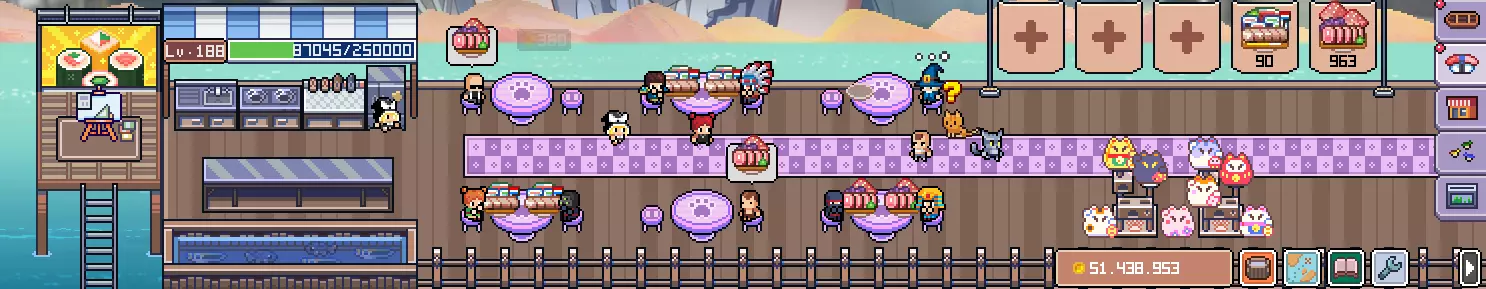 你可以出售菜品获得金币。最好出售升到满级的菜单!鼠标悬浮菜单图片之上即可升级。升级菜品是前期获得经验最好的方式。喂小猫会给金币;喂黑猫会对餐厅进行加成(菜单栏位,餐桌数量),升完后黑猫每来一次都会给猫猫主题装饰。有些菜单需要很多种鱼,这种组合菜单的解锁要求是所有需要的鱼的单独菜品都升到满级。商店