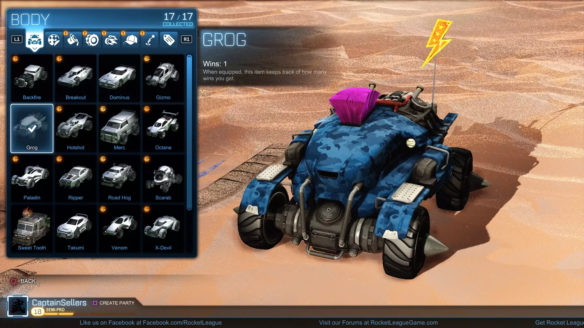 使用格罗格(Grog)角色,在职业级或更高难度的机器人对手身上打入10球。要达成这个成就,你需要装备格罗格角色(见下方截图),并在职业级或更高难度的机器人对手身上打入10球。只需创建一场表演赛,设置为1v1对阵职业级机器人,在突变设置中将“时间”和“最大比分”设为无限,然后一直游玩直到打入10球,成就就会解锁。面对职业级机器人打入10球并不难,它们经常失误。我每次都能打入10球,两场比赛总共只丢了4球,而我并非游戏高手,但这并不重要,因为你拥有无限的时间和比分限制。