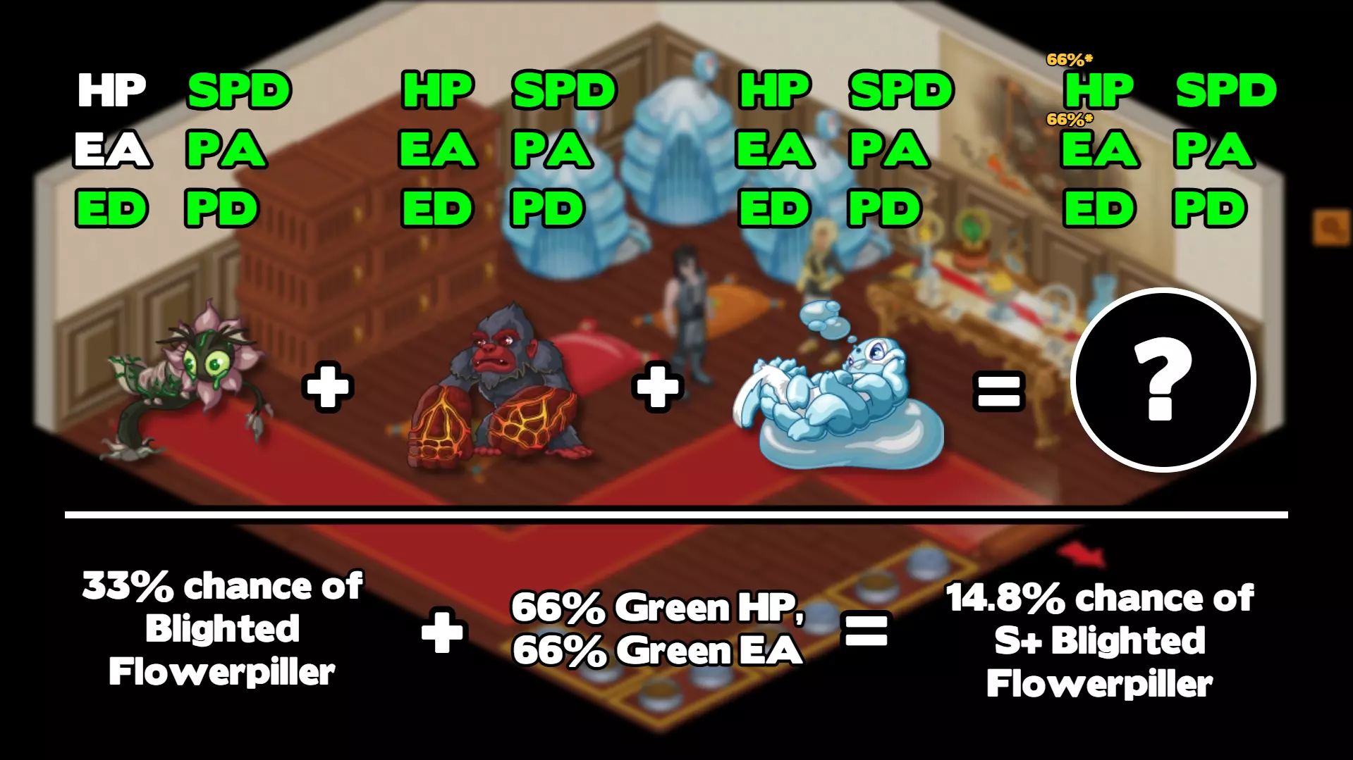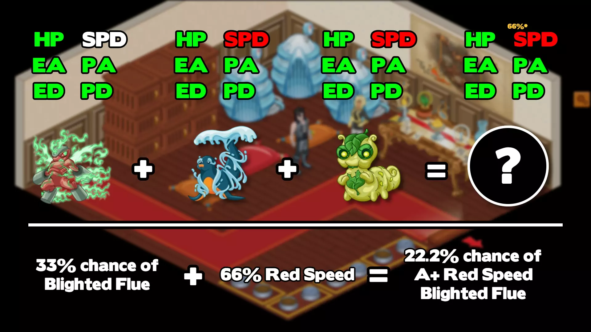 PVP гайд Этот гайд составил один из модераторов сообщества 引用自 Weo:If you're interested in playing the game more competitively, or just want to understand the battle system more, then this guide is for you. Let's start with some basics: # Type Advantages Miscrits has two type triangles. Fire > Nature > Water > Fire Lightning > Wind > Earth > Lightning Using advantageous attacks will deal double damage, weak attacks will deal half. It is critical to take advantage of these. # Swapping You can swap out a Miscrit at any time (if you're not Paralyzed). Doing so will cost you a turn. The Miscrit you swap out will be moved to the end of your party. Swapping 3 times in a row without attacking will result in a damage penalty, which keeps increasing until you attack. # Status effects There are many status effects Miscrits can inflict: - Sleep: Makes the afflicted Miscrit inactionable for a certain amount of turns. If the Miscrit receives damage, they will immediately wake up. - Confuse: The afflicted Miscrit will select moves randomly for a certain amount of turns. These moves can also be used from the opponent's side (i.e. a confused Miscrit could attack itself or buff the opponent). - Paralyze: Prevents the afflicted Miscrit from swapping for a certain amount of turns. - Poison: Deals fixed damage over a certain amount of turns (i.e. the damage is the same every time). - Damage Over Time (DoT): Deals damage of a certain AP over a certain amount of turns. This is not the same as Poison, as it uses the afflicted Miscrit's defence stats and the attacking Miscrit's attack stats for the damage calculation, just like a normal attack would. - Heal Over Time (HoT): Heals a fixed amount of HP over a certain amount of turns. - Barbed: Applies a certain amount of Barbed stacks to the Miscrit. When the afflicted Miscrit is hit by an attacking move, one Barbed stack is lost and the attacking Miscrit takes exactly 10 damage. - Bleed: Applies fixed damage that increases each turn, starting at 5 damage and going to a max of 20 damage. If the afflicted Miscrit heals any amount of HP, this status is removed. This status is also unique in that it is not removed if the afflicted Miscrit swaps out. - Switch Curse: Applies fixed damage that increases each turn, starting at 4 damage and going to a max of 16. Unlike Bleed, does not go away unless it runs out or the enemy swaps. - Block: Provides a barrier that blocks a certain amount of damage (e.g. 15 Block will prevent 15 damage before going away). - Antiheal: For a certain amount of turns, any HP that the afflicted Miscrit heals is instead dealt as damage (i.e. if a Miscrit were to heal 15 HP, they instead take 15 damage). - Cleanser: Removes all negative status conditions from the user (i.e. doesn't remove Buffs, immunities, HoT, etc.) - Purge: Removes all positive status conditions from the target (i.e. Buffs, immunities, HoT, anything Cleanser keeps). All non-instantaneous status effects can be removed by swapping a Miscrit out (except Bleed). # Speed System If you're just here to understand why people want red speed Miscrits then this is the section for that. The speed stat in Miscrits functions like so: At the start of the battle, the Miscrit with the higher speed moves first (if they're tied, it's selected randomly). After this, the player with the slower Miscrit now has **speed control**. If the player with speed control swaps in a Miscrit that is faster than the opponent, they will get a **double turn**, meaning they can move again. This is what we call **sniping**. It's often used to bring in a fast Elemental attacker to deal heavy critical damage to the opponent before they can move. After using a double turn/snipe, speed control will pass to the other player. This means you will not be able to get a double turn until the opponent uses theirs (they have *control* of the speed). This is the bread and butter of competitive Miscrits; sniping back and forth to deal heavy damage to your opponent's team. So where does red speed come into this? In order to utilise this tactic to the fullest, you want to do two things: 1) gain speed control (i.e., force your opponent to use their double turn) and 2) not waste your double turns. Players often want to use a tanky Miscrit to take snipes from their opponent, so that they can lessen the impact of their opponent's snipes. What you don't want happening is to swap to your tank, only for your tank to be faster than your opponent's Miscrits and not being able to take that speed control back. This is why people prefer red speed on their tanks, because it gives you a better chance to have lower speed than your opponent, and therefore more opportunities to gain speed control so that your snipers can do their job. Speed control also effects how statuses are processed. Statuses like DoT, HoT or Poison are processed at the end of the player with speed control's turn. This means if your opponent had speed control and you inflicted Poison, this Poison will not deal damage until your opponent moves, which also means they can just swap out rendering your Poison useless. It's especially important to keep speed control for Miscrits that rely on statuses like this. # Accuracy System Accuracy in this game utilises a pseudo-random system. For more information, check the video [here](https://www.youtube.com/watch?v=SevBHpydjLo). # Platinum Arena Platinum Arena is the primary PVP format for the game. This format currently bans the use of potions, and limits your team to 12 rarity points: - Common Miscrits: 1 point - Rare Miscrits: 2 points - Epic Miscrits: 3 points - Exotic Miscrits: 4 points - Legendary Miscrits: 5 points This means for example, if you wanted to use 2 Legendary Miscrits (10 points), you are forced to use 2 Common Miscrits with them to keep within the 12 point limit. This is to encourage diversity in the meta and prevent a few Miscrits from permanently dominating the gam