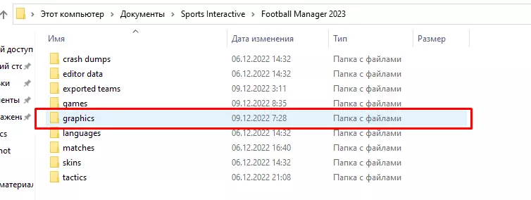 2. 解压缩文件包 我们已经下载了所有必要的文件包,无需一次性下载全部。如果只需要面部头像,就只下载面部头像包;如果需要队徽,就下载队徽包,以此类推。接下来该如何处理这些文件包呢? 我们按照路径C: Users <用户名> Documents Sports Interactive Football Manager 2023 graphics进行操作——这是默认路径,如果文件夹已被移动到其他位置,路径可能会不同,此时需要将文件解压到移动后的文件夹,同时确保文件夹的结尾部分保持不变。简单来说,就是通过“我的电脑”打开游戏文件所在的文件夹。 注意!如果没有graphics文件夹,需要手动创建一个。将所有存档转移到【graphics】文件夹,并将下载的压缩包解压到该文件夹中。为方便起见,你可以在【graphics】文件夹内创建【faces】【logo】等额外文件夹,并将存档解压到这些文件夹中。