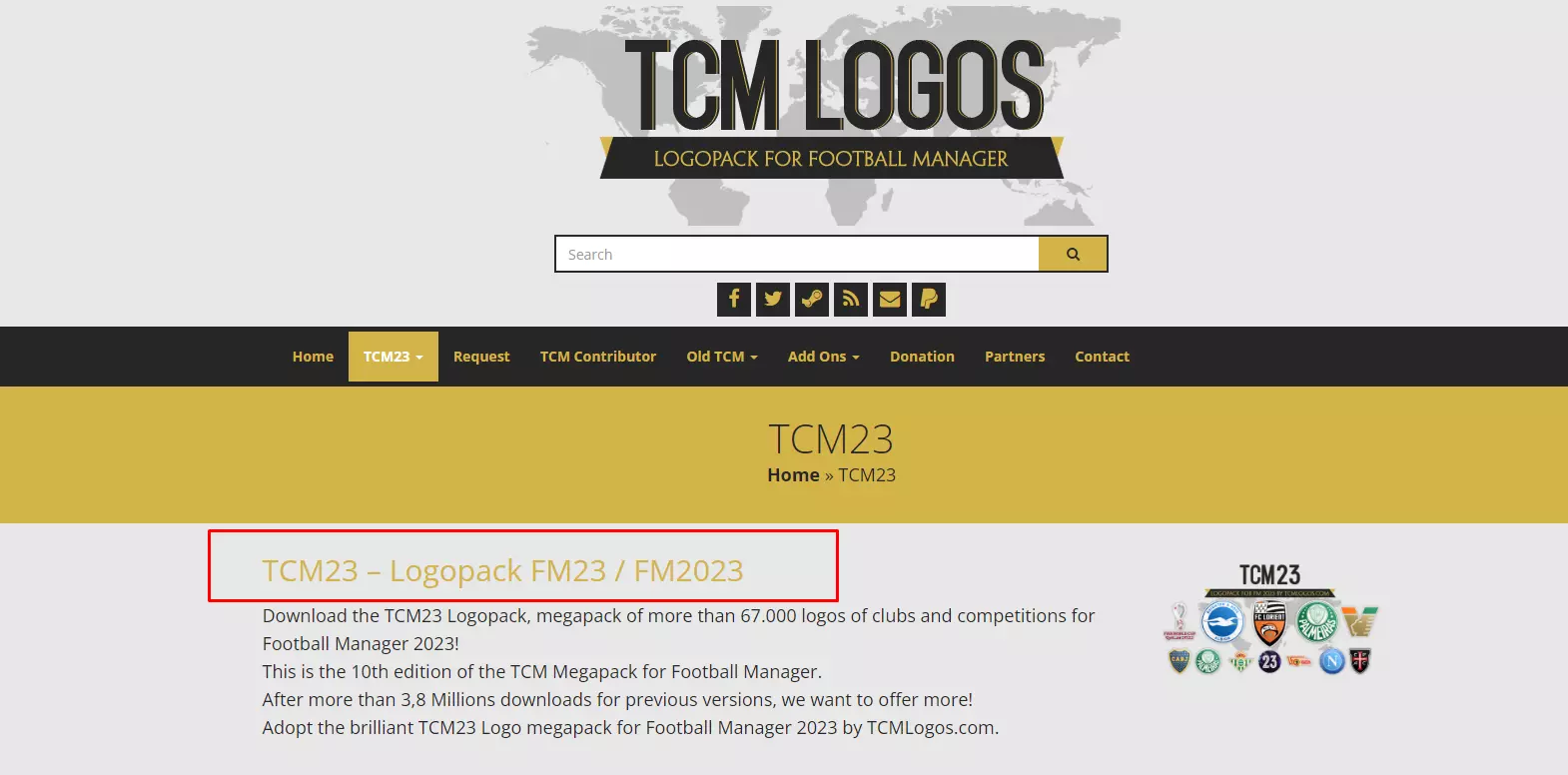 1.3 队徽包 队徽包 - 点击获取(首先点击“Logos TSM23”,然后点击“TCM23 – Logopack FM23 / FM2023”,向下滚动页面并点击“TCM23 Megapack - Download”)