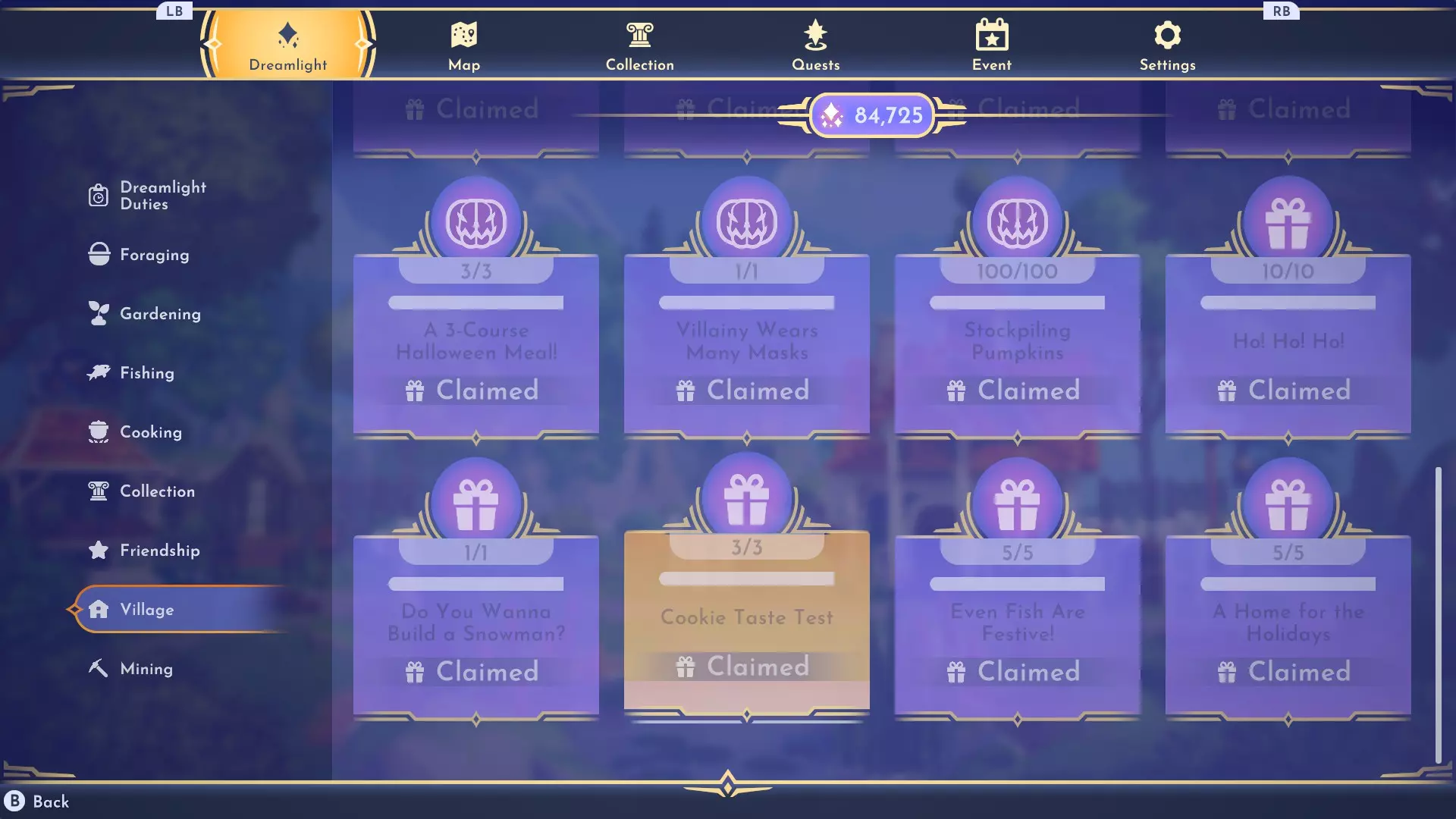 你每天可以从商品目录中订购25件物品。 关于史高治商店的另一个重要提示:服装只能购买一次,至少目前不会再次循环出现。与其因为连续几周每天都看到同一条裙子而感到烦躁,不如每天购买所有服装(只要你的金币足够),这样你就会开始看到更多种类和颜色的变体。 总有一天我会得到《美女与野兽》里的发型,等着瞧吧,史高治.. 节日任务 你可能已经注意到,在季节性活动期间,你的梦光谷标签中会出现一些额外的节日相关任务。需要注意的是,这些任务在发布后并不总是能立即正常运行。