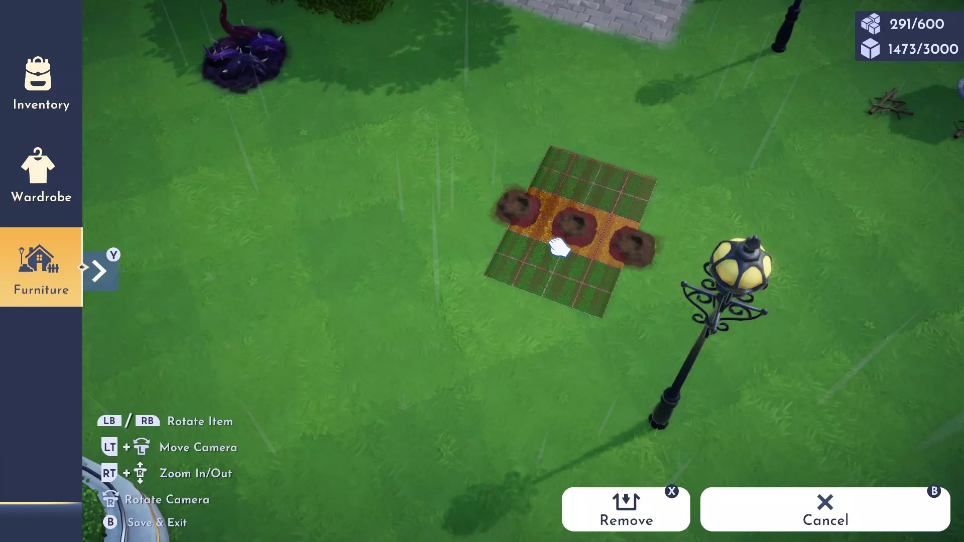 相反,一旦你拥有地毯,就可以进入家具放置模式,将地毯直接放在挖掘点上,挖掘点就会消失。你可以多次移动同一块地毯,覆盖一大片区域内的多个挖掘点。然后只需将地毯放在最后放置的位置保存,再次进入家具模式并移开地毯,再次保存,所有挖掘点就会轻松被填平。一旦知道方法,清理过程只需几秒钟。 几乎所有物品都可以移动