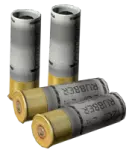 灰色橡胶弹药:12号口径非致命霰弹枪弹药。用于霰弹枪。此外还有带一道膛线的12号口径霰弹(+)。 伤害 0 冲击 50-100 出血 100