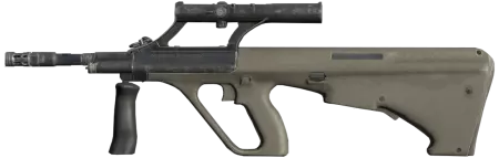 自动步枪(公牛-爸爸)。因其紧凑性和杀伤力,非常适合狭窄空间使用。使用5.56×45标准弹药。弹匣容量:30发。(配备不可拆卸的内置瞄准镜和专用弹匣,不与标准弹匣通用) AUR AX(AUG A3)