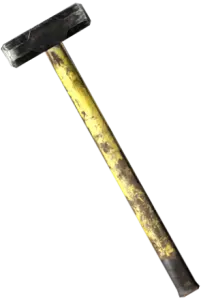 普通锄头。坚固的钢刃能轻松挖开泥土和敌人的头骨。使用锄头可以挖掘地下储藏室。此外,通过强力攻击(右键+长按左键)可使敌人陷入昏迷状态 锄头 伤害:25 冲击:50 流血:0 强化冲击:100 大锤