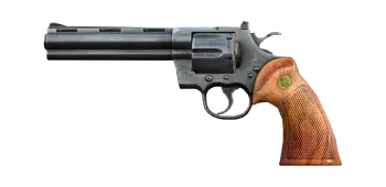 六发左轮手枪。与手枪相比,它的装弹速度相对较慢,且需要频繁的维护。从正面来看,它在中近距离能造成高额伤害。内置弹仓容量为6发.357口径子弹。在我看来,这是美的典范。沙漠之鹰