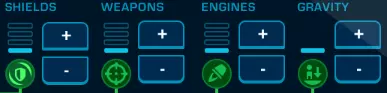 This is your power grid. At first you only have 4 to work with. So it is important to use it correctly. So which is most important? Engines. Hands down. All the way. Moving on. Okay, let me explain. Weapons power and why it is bad. You need 1 bead of power in weapons to shoot any energy weapons. This is all you need. Honestly, almost ever. Why? Well, for starters boosting it above one increases the damage of energy weapons ONLY. Full energy to weapons? 145% better lasers. 100% on the guns though. Only one energy in weapons? 100% to both. This is compounded by accuracy. Remember fresh crew members are horrible at shooting. Your non-gunners have a 30% accuracy. Even starter gunners miss half the time. So you have to half that bonus or more. It's bad, don't fall into the trap. Put energy else where. Shield power and why is isn't very good. Every bit of energy in shields makes your shields charge faster. Sounds great! Why is it bad? Because it is suppressed every time you get hit. Four blips of power boosts recharge to a whopping 200% percent! When they don't get hit. And in combat they WILL get hit. A lot. All the time. Your captain in defensive stance will try to put your strongest shield toward the enemy but 90% of the time you will be swarmed by fighters from all angles. And one point of damage is enough to keep your shields from charging at all. Now later on, it is the best second place to drop energy. But I'll get to that in a second. What about gravity? At the start I would say take it out and drop it in engines. You can have your engineer toss it back in to gravity if things get dicey and you need to repair multiple systems. Or any fire. Seriously, don't try to fight fire without gravity. So what makes engines the place for all the power? One word: Evasion. Every point in engines boosts your evasion by 10% (which is further boosted by your pilot's skill). Every shot you evade does no damage. This means that your shields stay up longer. Your crew takes less damage. Your systems fail less often. The full 4 blips of power gives you a solid 30% dodge. Anyone who's played FTL knows how powerful dodging can be. Combine this with the 10% evasion from defensive piloting mode and your ship will dodge around half the shots coming your way. Once you have engines maxed out, shields are a good place for extra energy. When you dodge enough your shields can actually recharge somewhat in combat but that's for after engines are maxed so much MUCH later in the game. So on the early missions take energy out of gravity and toss it into engines. And upgrade your reactor as soon as you have the research to do so. More energy the better! Crew Equipment and Ship Equipment. Your crew WILL take damage. This is a fact of life. Shots will get through even the most agile ship with the best captain and the strongest shields. Equipment is there to keep them safe. However, don't just grab the highest armor. The better the armor the slower your crew moves. So basically, everyone but the Captain needs a balance of defense to moving like a slug. Taking next to no damage don't help if your engineer takes a month to get to the reactor that is about to explode. There are crew equipment that provides oxygen, this is a trap. Keep your oxygen system repaired and keep your head in a helmet. There is crew equipment that provides protection from radiation. This is situational at best. There is a case to have your engineer pop it on so they can fix the engines. However, they don't take a lot of radiation damage in the first place. I suppose you could outfit the energy turret gunners with it to use more overpowered shots, but honestly getting shot and dying is worse than not overloading the weapons. Ship equipment is varied but here are some rules of thumb. Reactor: You want as much energy as possible. This is the stat to look at. Engines: Evasion is what you want here. Less radiation or more hp is less important than not getting hit in the first place. Shields: Recharge sounds tempting but you want cap here. The bigger your shields the more punishment you can take. And keep in mind your security officer can completely refill them with a cooldown. Medical bay: Capacity is king. When you run out of healing juice you can't heal any more. Getting it into your crew faster is great, but running out quicker is worse than having someone in med bay longer. Weapons are up to you. There are energy weapons that are good against shields, physical weapons that are good against hull and armor. Find what you like. A note on missile launchers though. I'm not sure if it is a bug or just how they operate, but they seem to miss more than other weapons. Even with focus fire on (100% accuracy) I noticed several salvos missing their target. Equipment lockers: Up to you again. Just make sure to have a space suit handy for engine repairs. A few fire extinguishers near weapons that catch on fire. And a couple rifles to repel invaders. Where to place them is up to you. Although, note that invaders can only come in from the bottom left room so plan your weapons around that. Advanced tips As I've progressed further I've found a few more tidbits to help your travels through the inky black. Your captain's Inspirational Speech ability heals for just about the same as the radiation damage from Overdriving energy weapons. So you can pop the overdrive on all your energy weapons for the damage boost and when they are finished have the captain give a speech to heal everyone back to full. Gunners learn the ability Backup Power which can be used on any energy weapon. When you have power they give a damage boost without any cost. This ability can also be combined with the Security officer's Emp. The Emp will knock out alien ships AND your reactor. Then you can pop the Backup Power to continue firing on the helpless aliens. As a follow up to the above, the rail gun is a physical weapon that uses energy so you can use it as an anti-hull weapon that can take advantage o