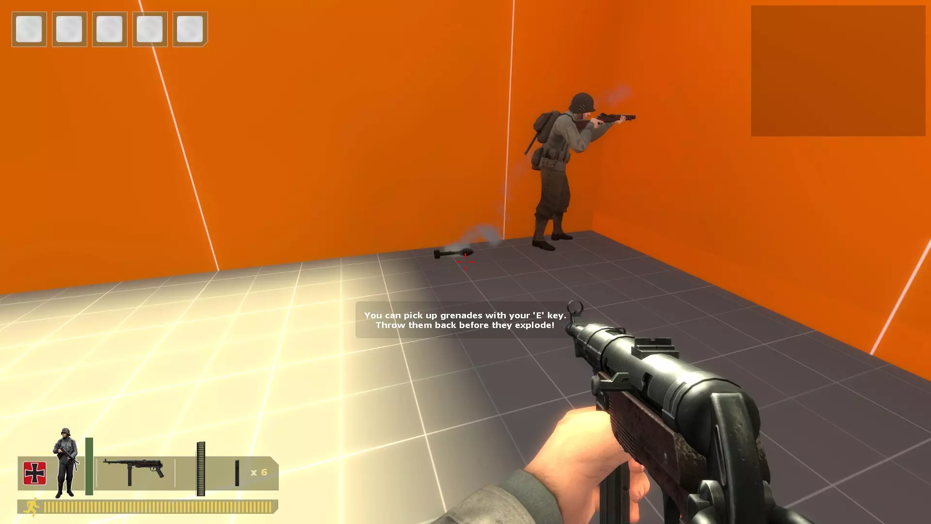 通过扔回敌人队伍的手榴弹或枪榴弹来击杀一名敌人。 在控制台输入bot -class 0生成一名步枪兵 bots。 在控制台输入sv_cheats 0,然后输入retry。 加入盟军并选择步枪兵职业。 使用bot_mimic 1命令让 bots 移动到角落,然后装备你的枪榴弹,此时 bots 应该会跟着做。
