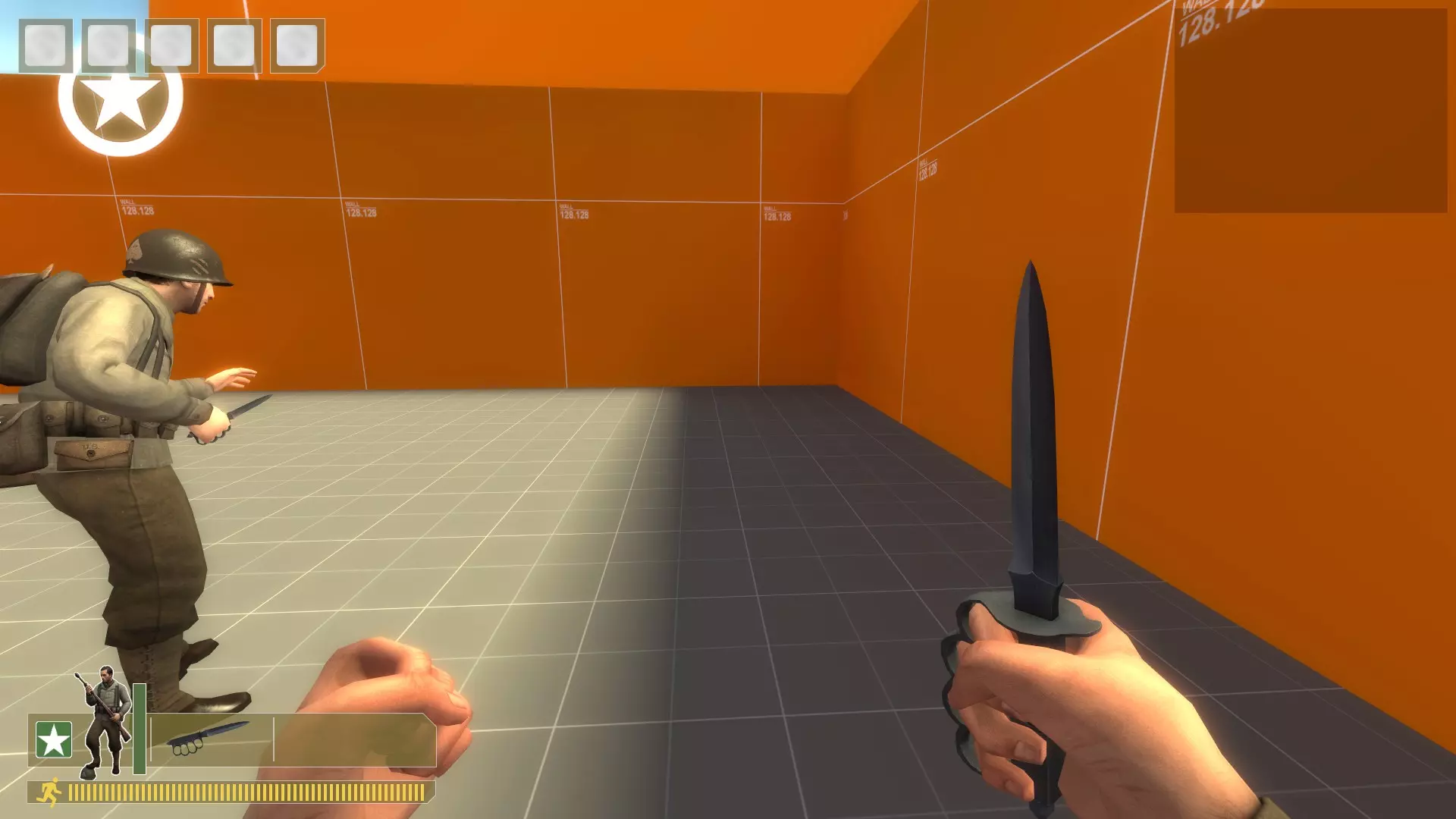 赢得刀战 通过输入bot -class 0生成一名步枪兵机器人 在控制台中输入sv_cheats 0,然后输入retry 加入盟军并选择步枪兵 输入bot_mimic 1,切换到你的刀具,再输入bot_mimic 0 输入bot_attack 1,切换到德军阵营