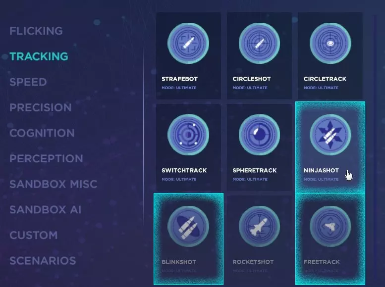 同样在追踪选项卡中,但需进一步向下选择: 忍者射击 闪烁射击 自由追踪