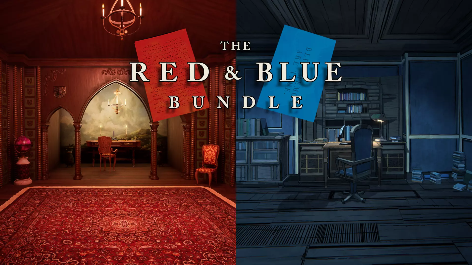 我们很高兴推出红蓝Steam捆绑包。该捆绑包包含两款顶级好评的解谜冒险游戏:《神秘岛》(2021)——一座异常美丽的岛屿,笼罩着神秘诡异的氛围;以及《蓝色王子》(2025)——一款以神秘的霍利山庄园为背景的氛围建筑冒险游戏。