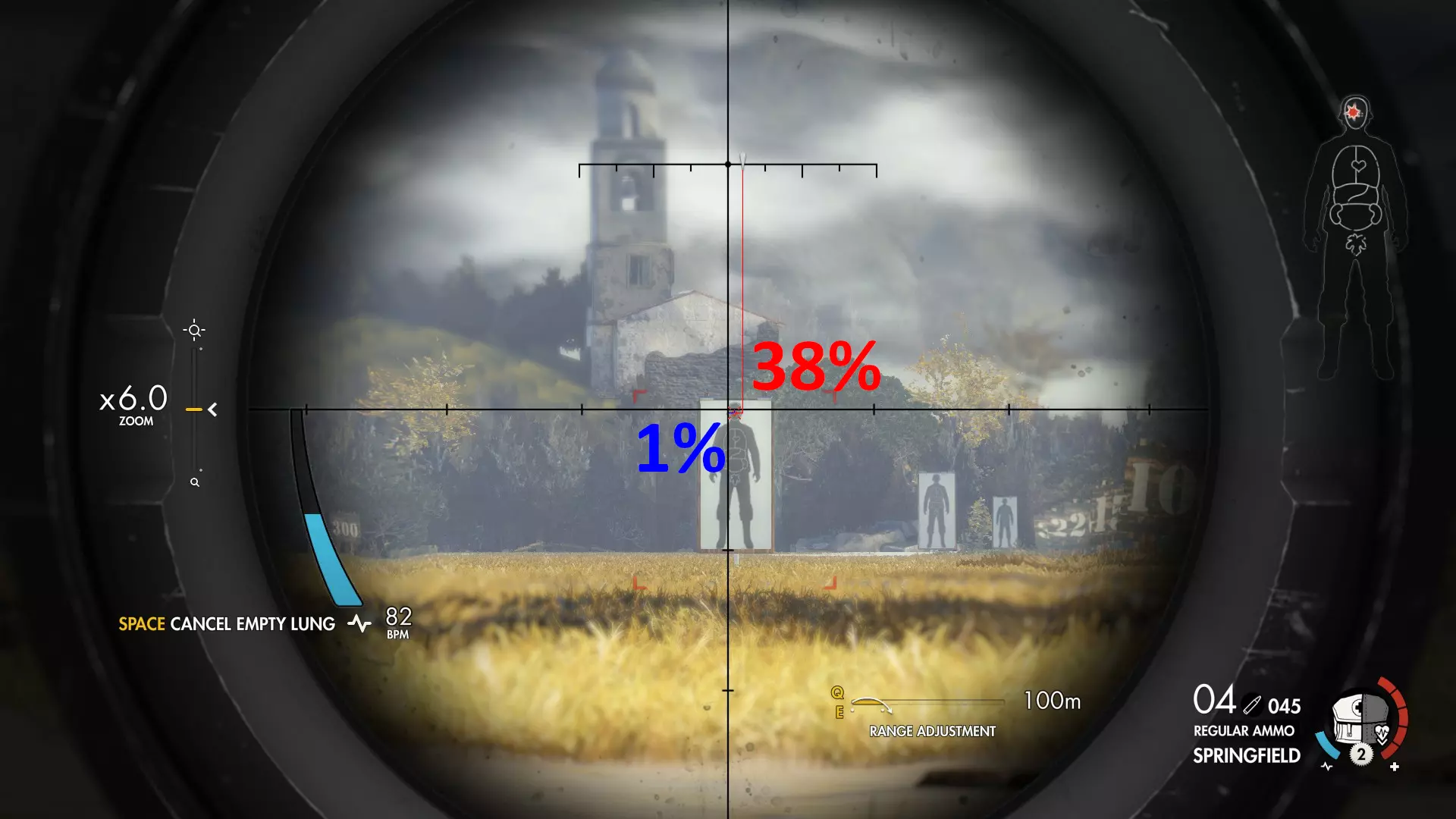 本指南将介绍弹道模拟中距离与风力的关系,帮助你在不使用瞄准辅助的情况下确定射击位置。 本指南尚未完成,但我会尝试在一周内完成。 免责声明:本指南内容可能存在错误,如果你怀疑某些内容不准确,请告知我。提前感谢你的反馈。 术语说明: - 本指南按狙击步枪名称分类,涉及的步枪均【无任何升级】。 - 步枪均使用默认最大倍率瞄准镜,无任何升级。调整值是右下角显示的距离调整表,单位为米。 *米表示物体的距离,单位为米。 高度百分比为纯蓝色,在这种情况下,100%是从瞄准镜中间到水平线的距离。 宽度百分比为纯红色,在这种情况下,100%是屏幕顶部箭头的中间位置。 测试使用精细准星进行。 春田步枪 常规弹药春田步枪 - 0调整 - 50米