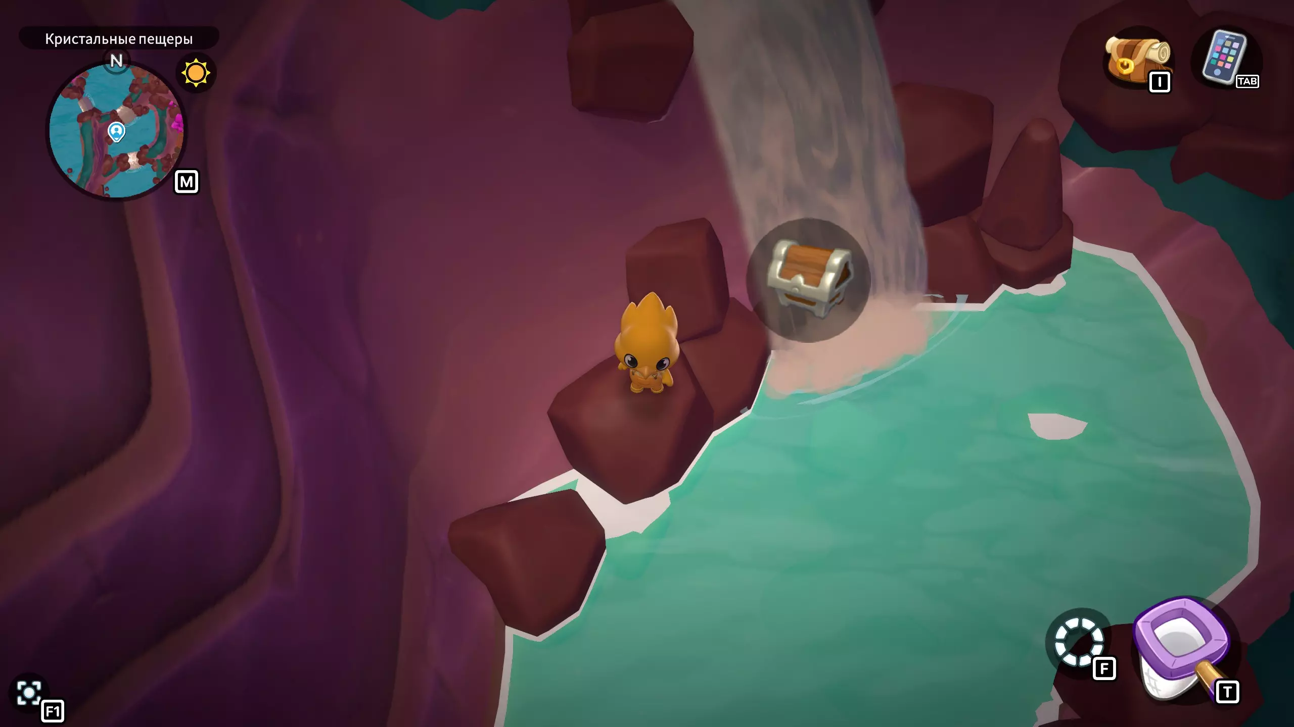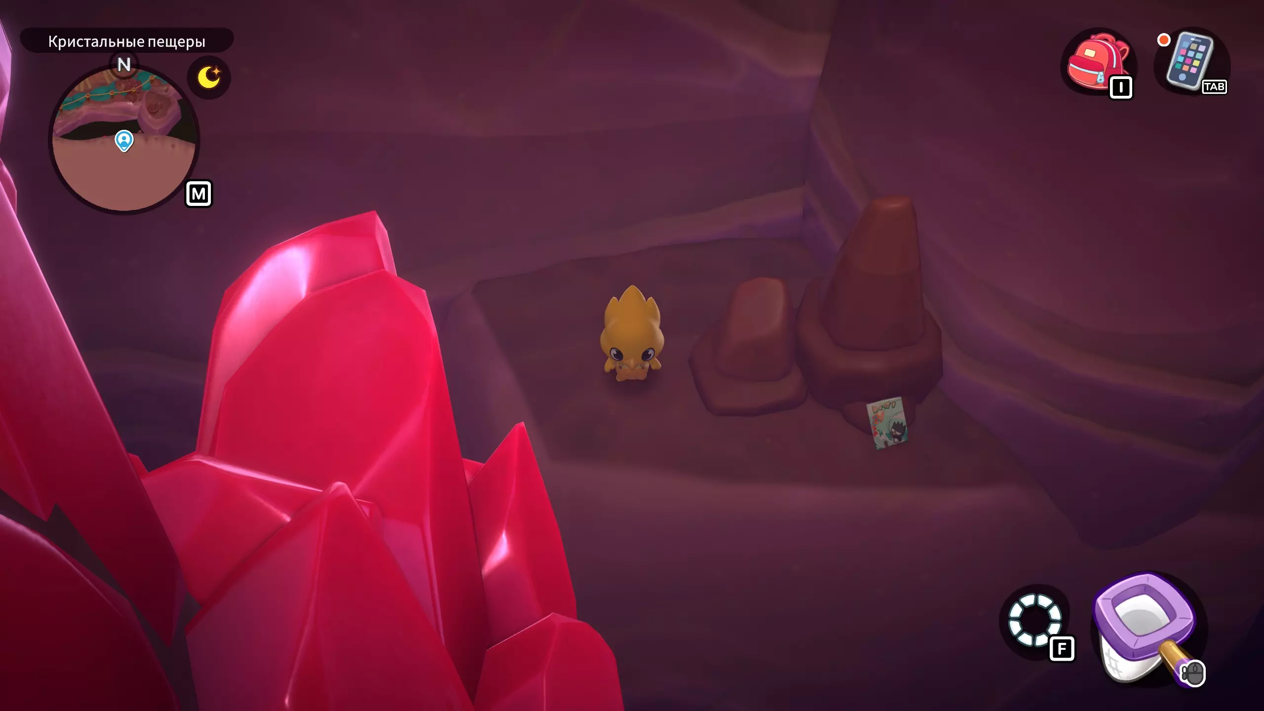 [9月25日] 带有金属光泽的彩色小球。从【宝石城】向北走到尽头,直到进入矿井。进入矿井后,向左走并向上进入紫色通道,然后向左进入下一个通道,接着移动到矿井的右下角。
