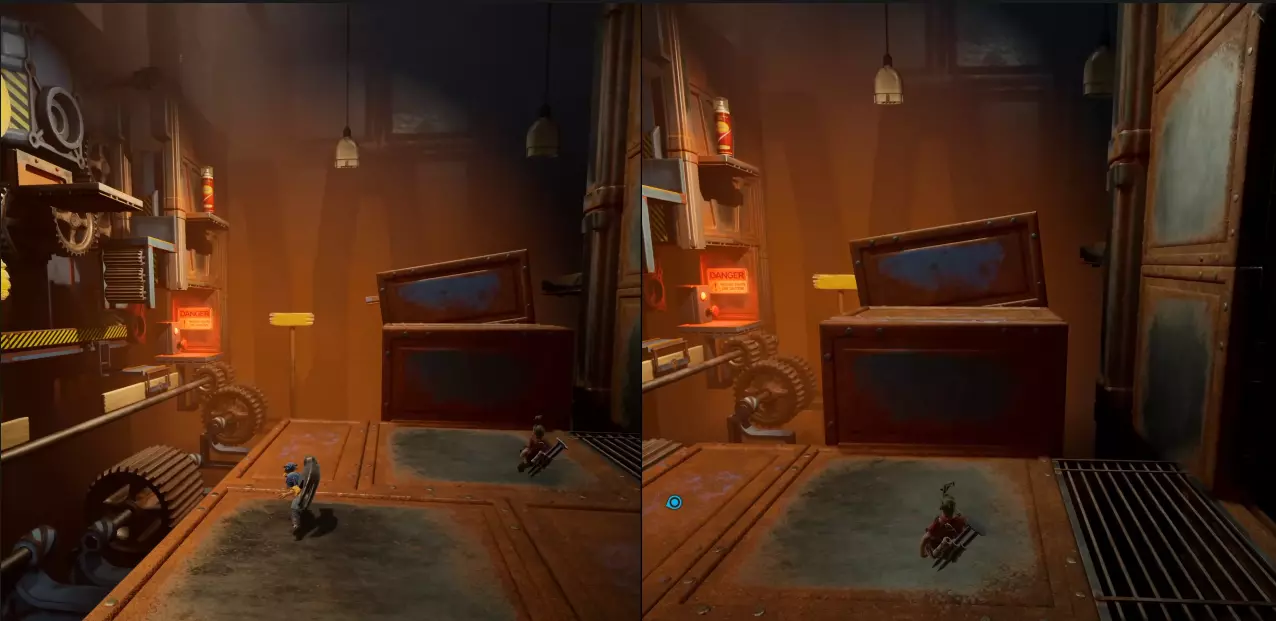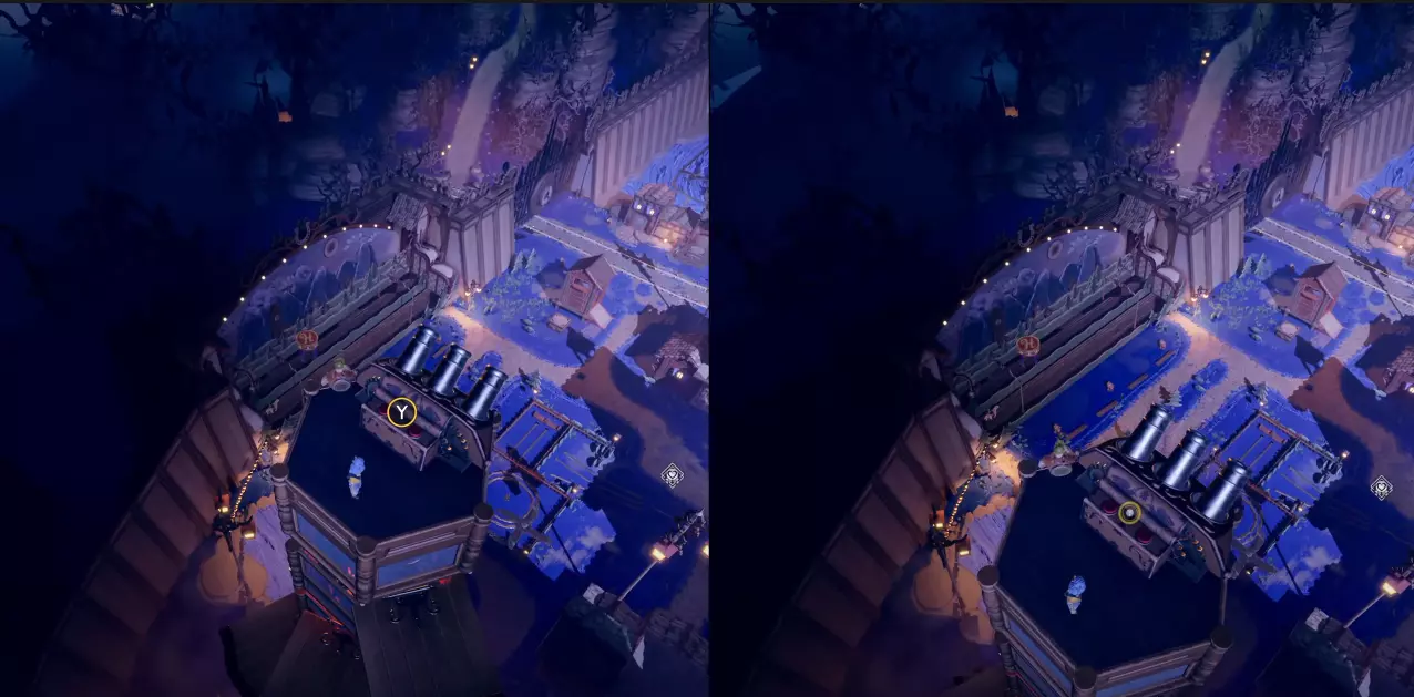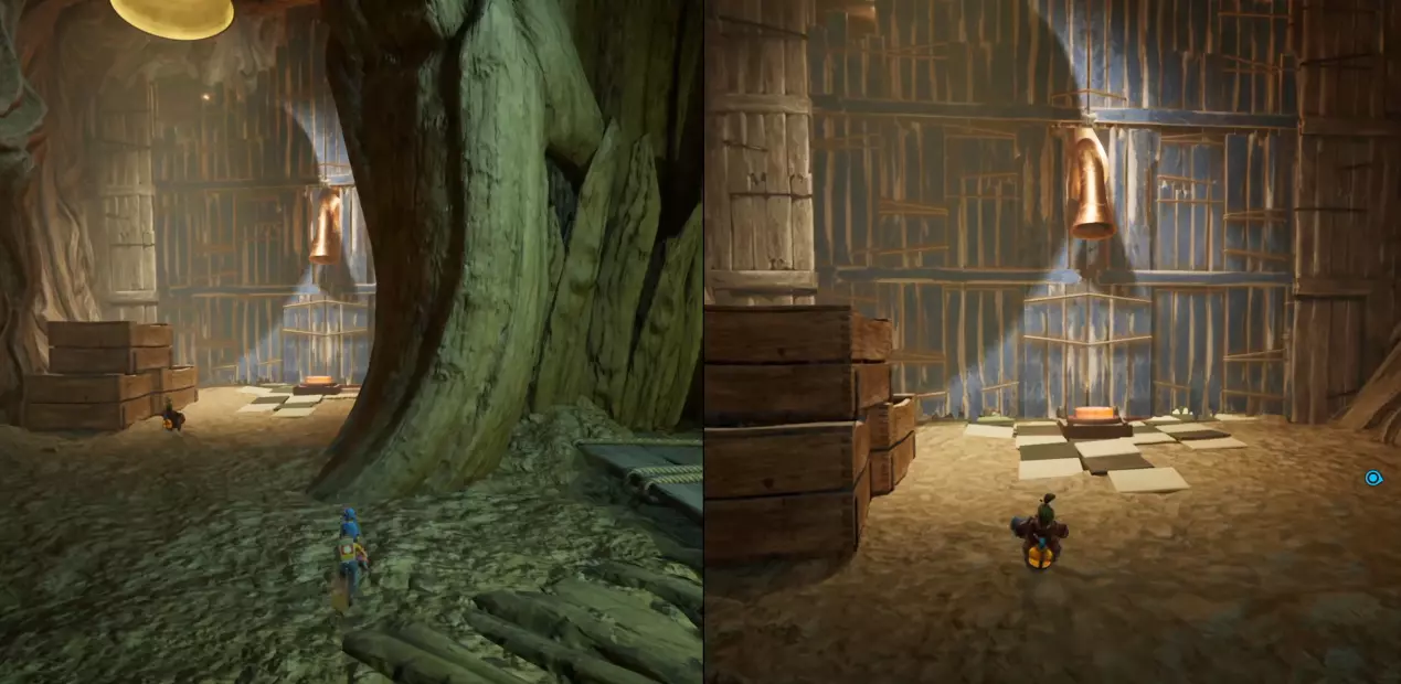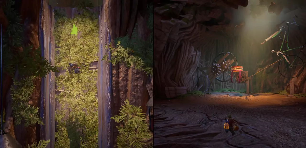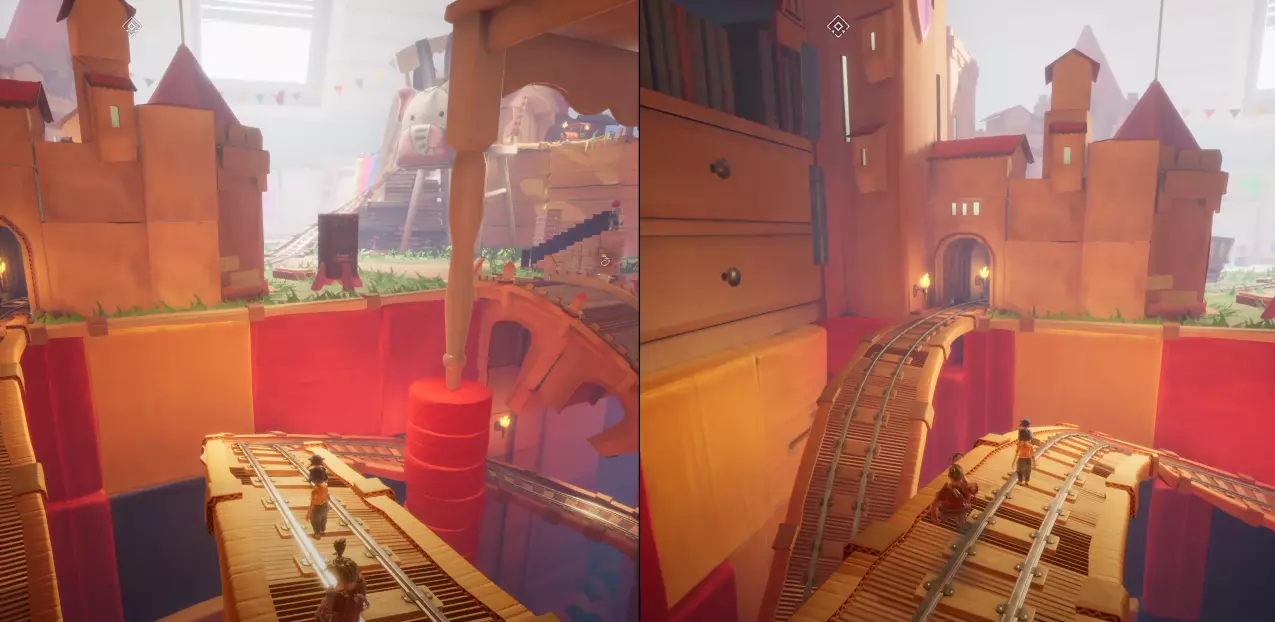 第一幕:阿马雷利尼亚 在幕初,他们前进并穿过另一边,会有一辆黄色的推车。一名玩家需要坐上推车,另一名玩家则必须将推车摆放好,以便它能沿着斜坡滑下并穿过圆环,从而获得成就。