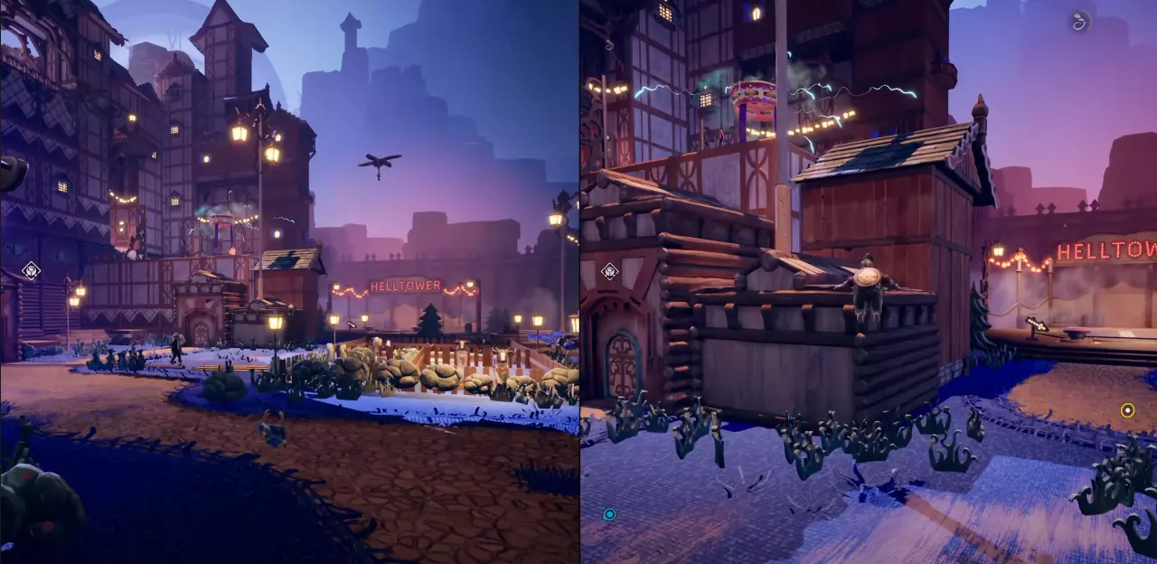 你会注意到【HELLTOWER】字样就在前一个小游戏旁边,你需要与两个按钮互动来生成一座塔。这可能是一个有点麻烦的平台跳跃关卡,保持耐心,到达塔顶即可获得下一个成就。
