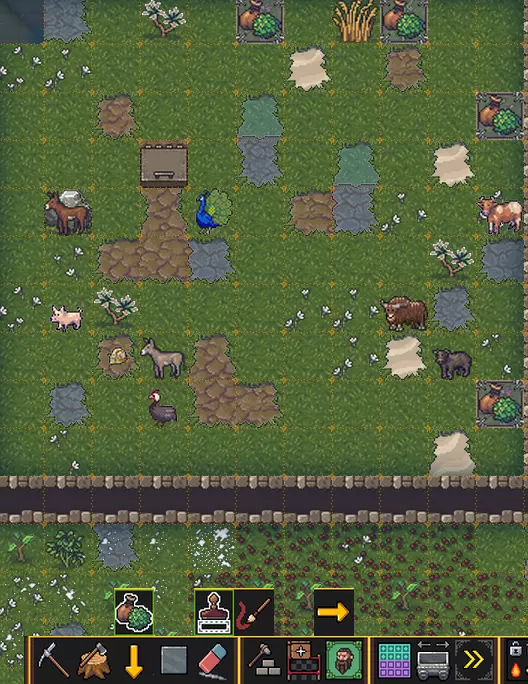 钓鱼 这里的操作非常简单。如果你的角色被设定为渔夫,他会自动进行钓鱼。为了让他不会随意乱逛,需要给他指定一个较近的钓鱼地点,例如你河边的排水口附近。只有在河流中钓鱼才有意义,通过Aquifier(蓄水装置)创建的人工水域中自然是没有鱼的。 要清理生鱼并将其转化为烹饪食材,你需要一个渔业工坊。它会自动运行,不需要特意去操作。 鱼是食物的重要来源,有了鱼基本就不用再为食物发愁了。因此,没有河流的话,生存将会是一个巨大的挑战。你自己想想吧。 畜牧业 你可能已经注意到了,和矮人一起,你还得到了一些牛和鹅。它们可不是平白无故出现的,而是用来养殖和食用的。要做到这一点,你需要三样东西。第一,一个活动空间。这个空间必须有草,也就是在地面上。当然,这个地方还得安全。我的情况就不太妙,因为我定居在一片阴森的森林里,这里会定期释放有毒气体,闻到的人就会变成僵尸。所以我得先建一个小型的密封棚屋,之后才能开始养牛。需要用【画笔/牧场】工具圈出合适的区域,并在那里放置食草动物,不需要猫和狗。