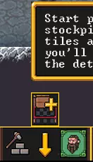 挖掘石墙时会留下石块,初期可用于建造。房间建造完成后,点击【Stockpile】按钮。